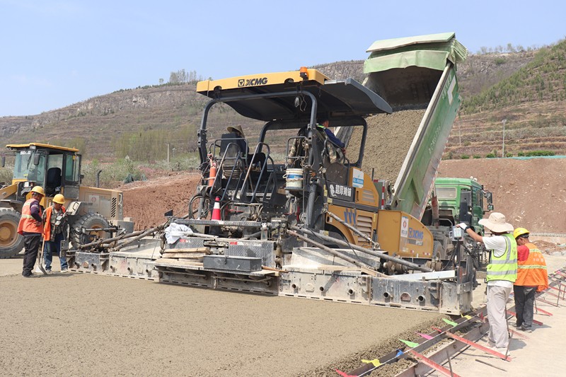 臨臨高速六標(biāo)(中莊互通至標(biāo)尾段)主線水穩(wěn)攤鋪完成