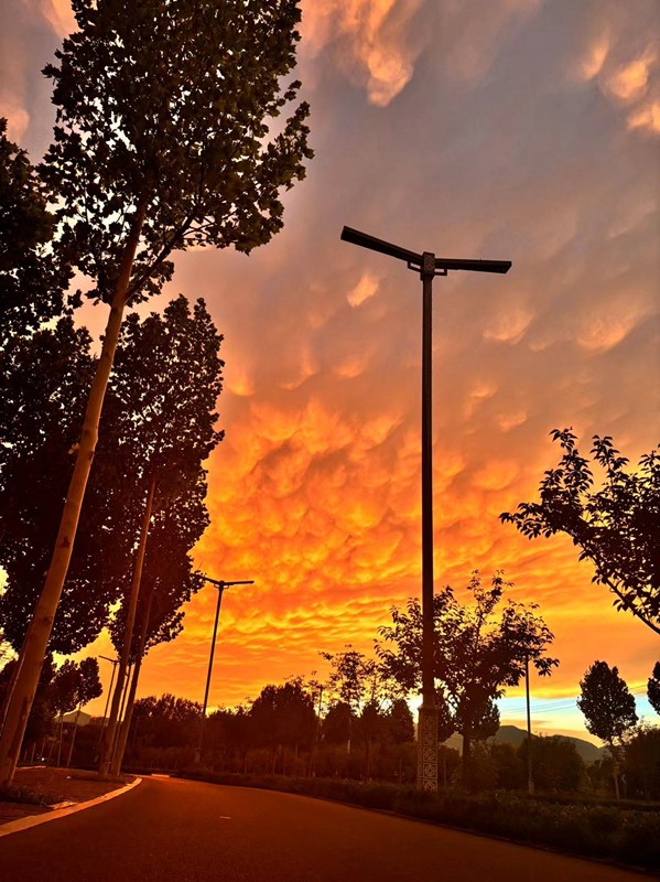 云的變幻不僅是大自然的神奇之處,更是人們心靈的寄托。在忙碌的生活中,人們常常抬頭仰望天空中的云朵,從中尋找片刻的寧靜與慰藉。云朵的千變?nèi)f化如同生活的多姿多彩,給予人們無盡的想象空間。傍晚吃完晚飯看著外面灰蒙蒙的天以為要下雨,打算出去散散步快去快回,剛走不久頭頂?shù)脑谱兊迷絹碓矫?,越來越絢爛多彩,我感覺單單一張照片顯示不出當(dāng)時(shí)的精彩絕倫,。每一分每一秒的云都不同,每個(gè)角度有每個(gè)角度的美。