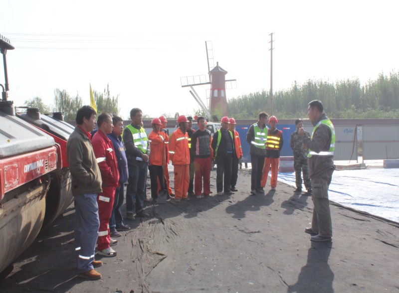 省道S102油層施工現(xiàn)場(chǎng)進(jìn)行安全交底