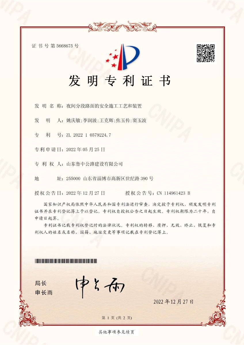 夜間分段路面的安全施工工藝和裝置
