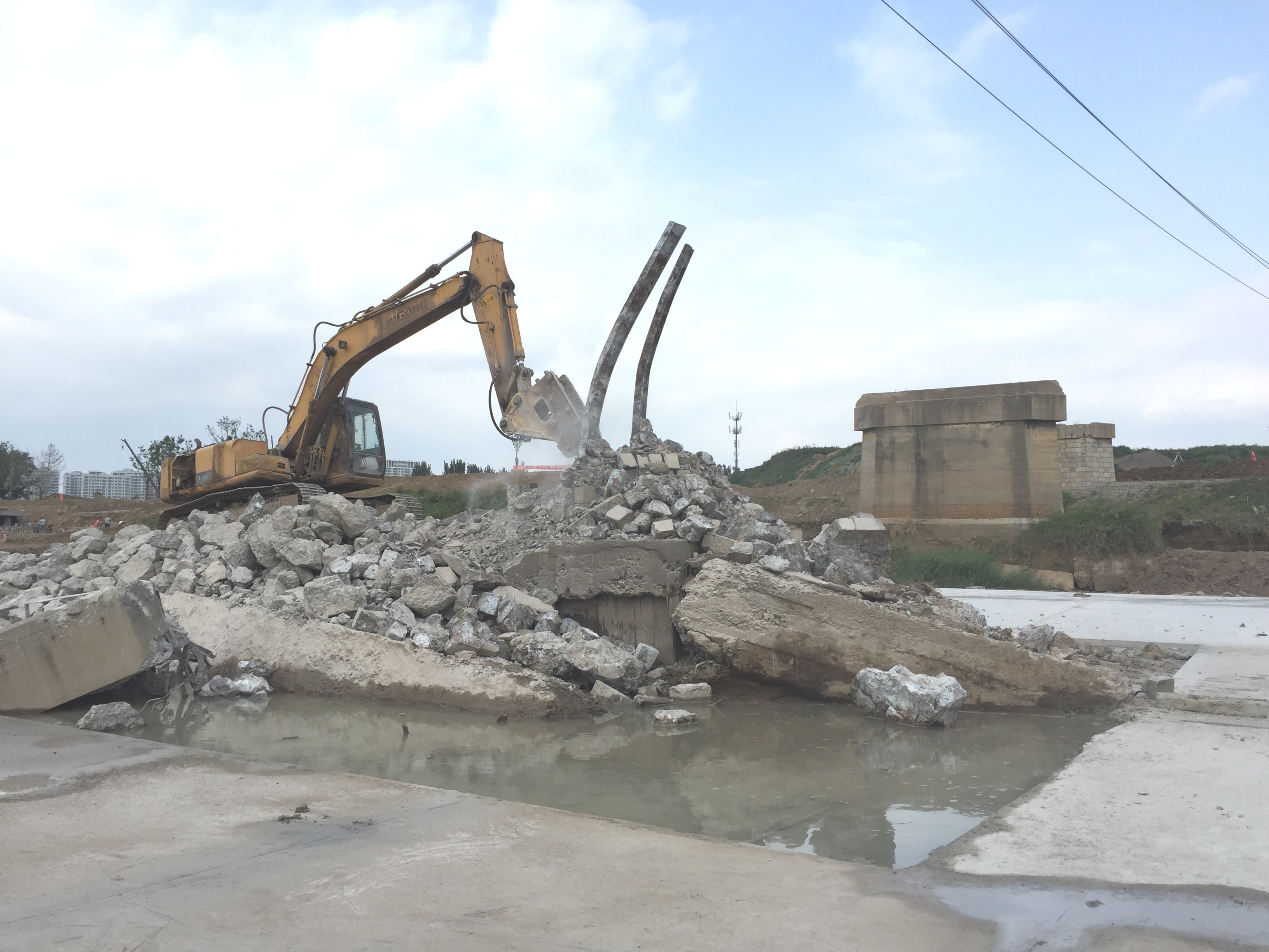2016年9月18日,開始舊橋墩拆除工作。