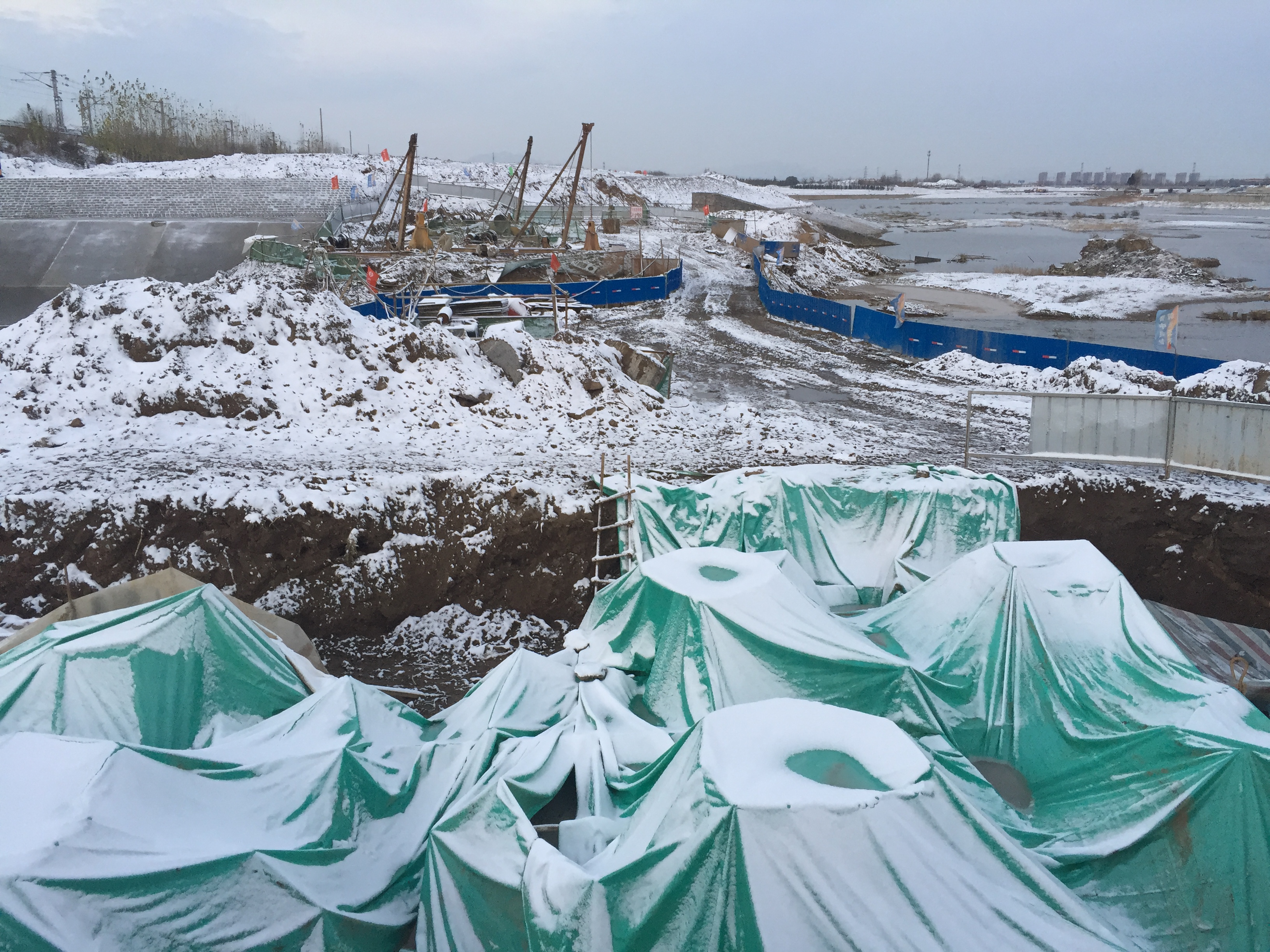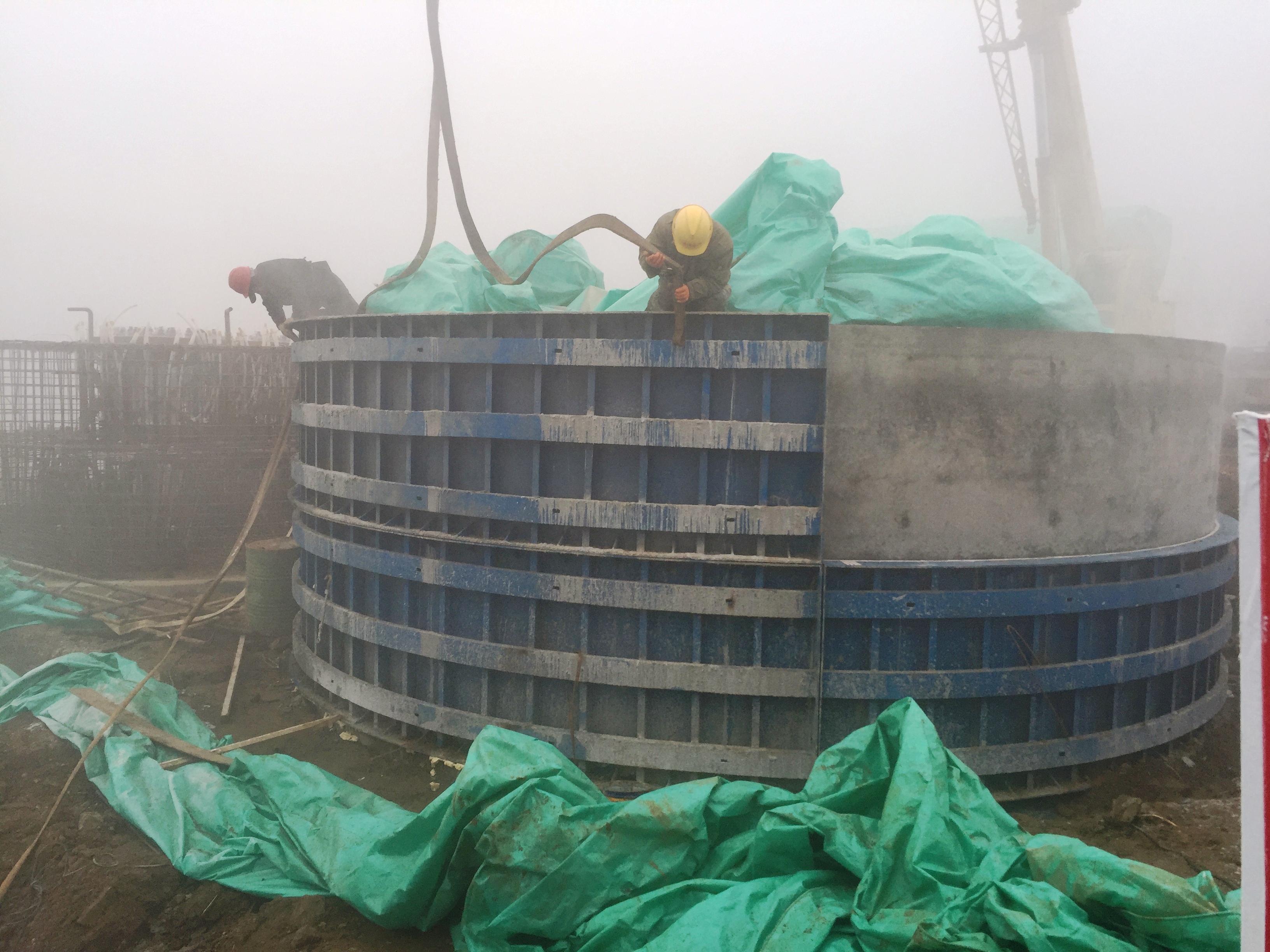 2017年1月2日,圓承臺混凝土養(yǎng)護(hù)。