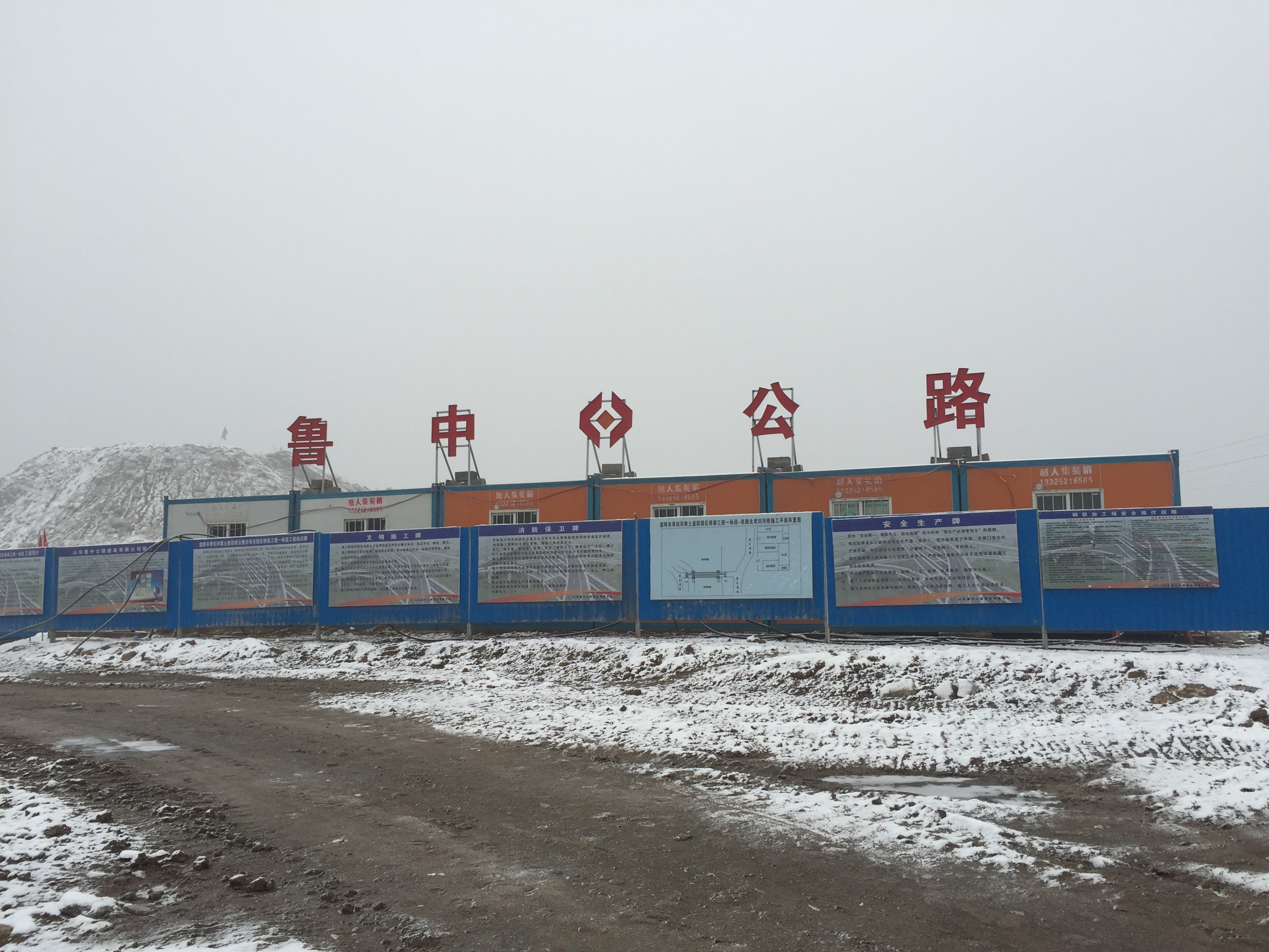 2016年11月22日,懸索橋工地、項(xiàng)目部被皚皚白雪覆蓋。