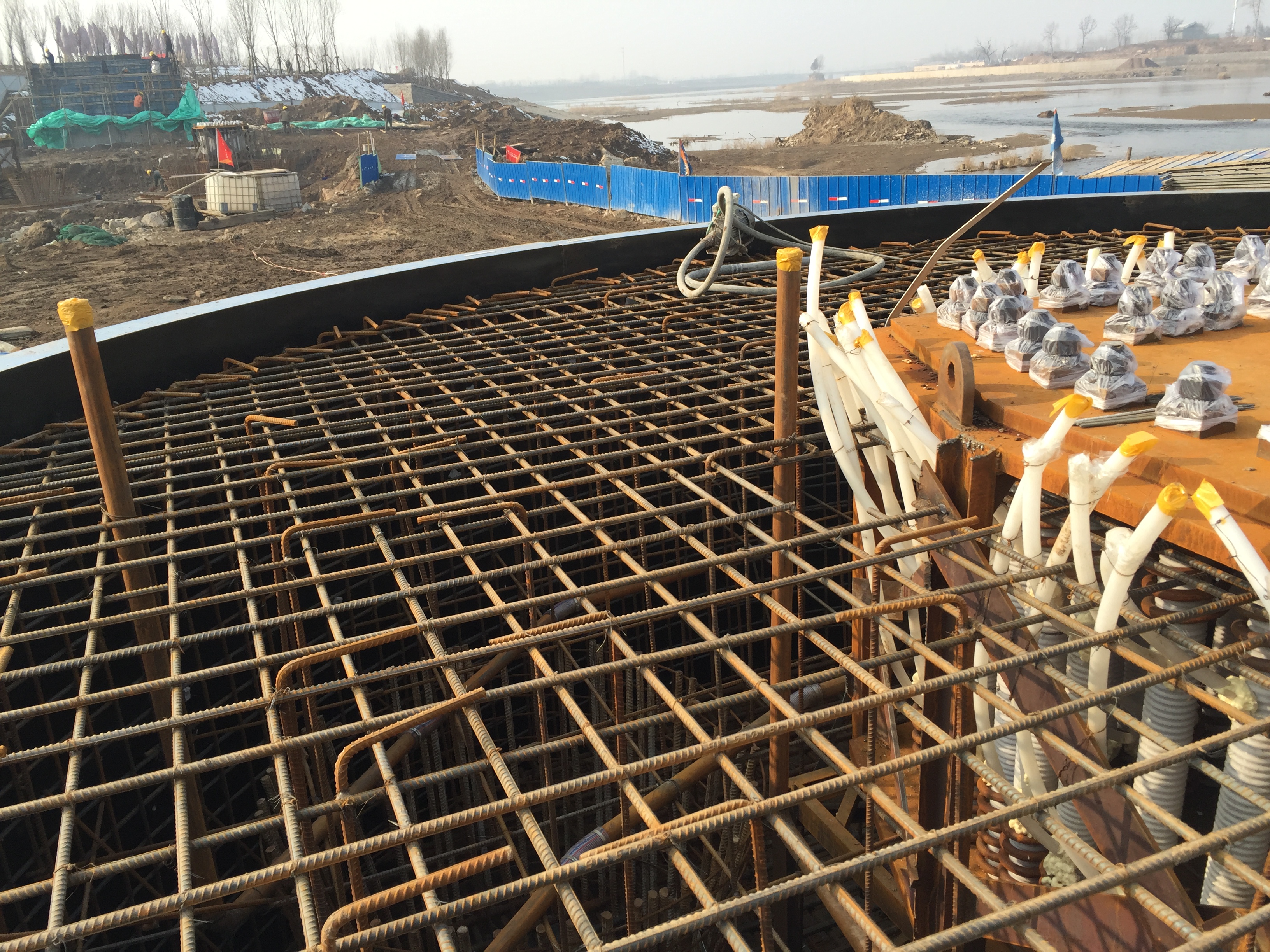 2016年12月31日,施工過程中為防止圓承臺混凝土水化熱過大而影響質(zhì)量,我們增加了冷凝管。