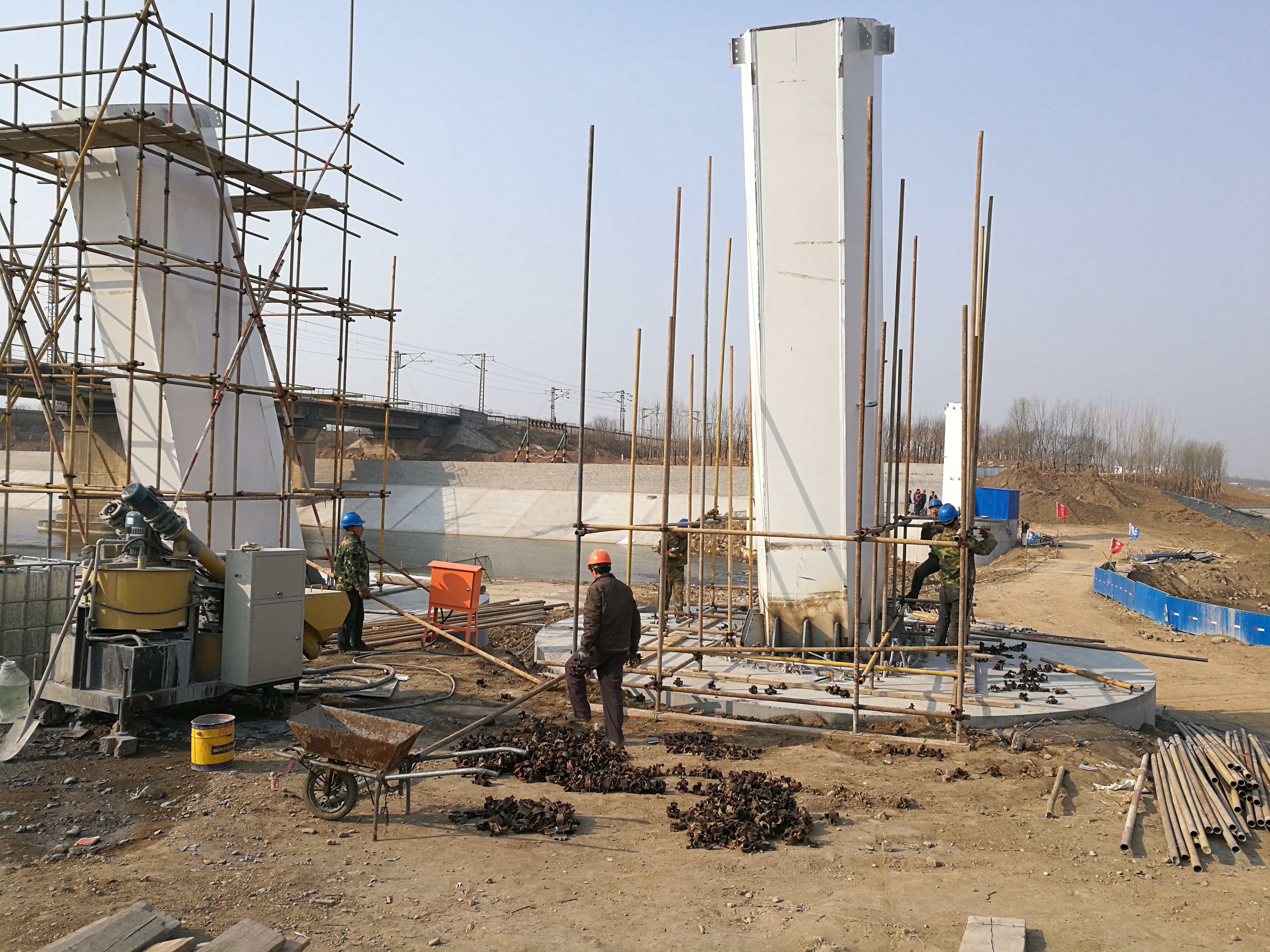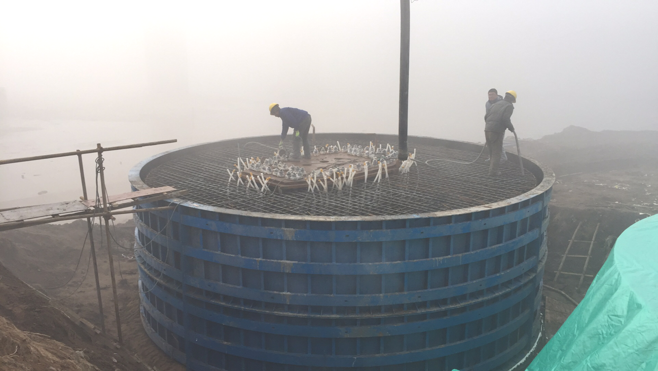 2017年1月14日,久違的藍(lán)天下,我們完成了最后一個圓承臺的澆筑。