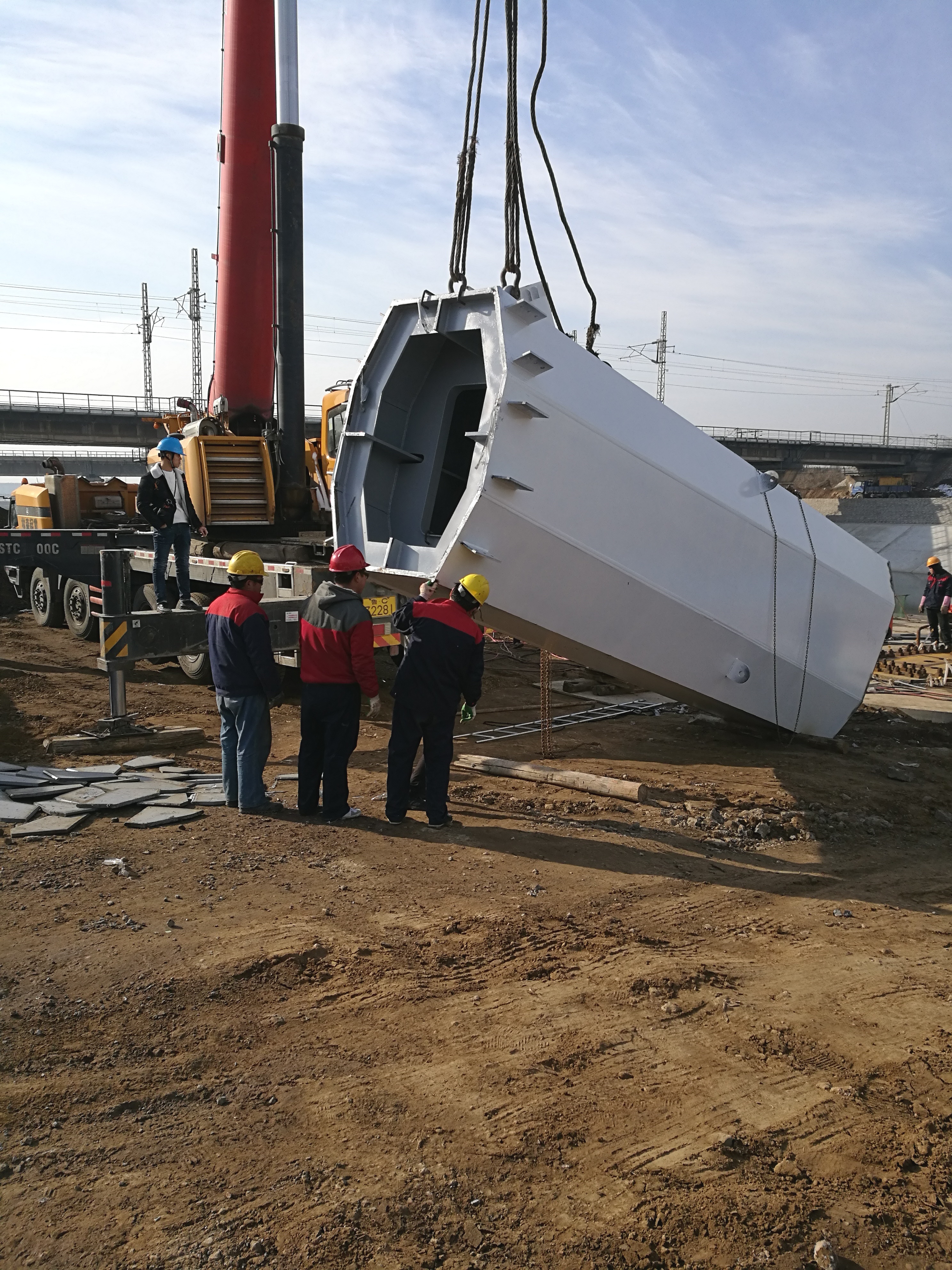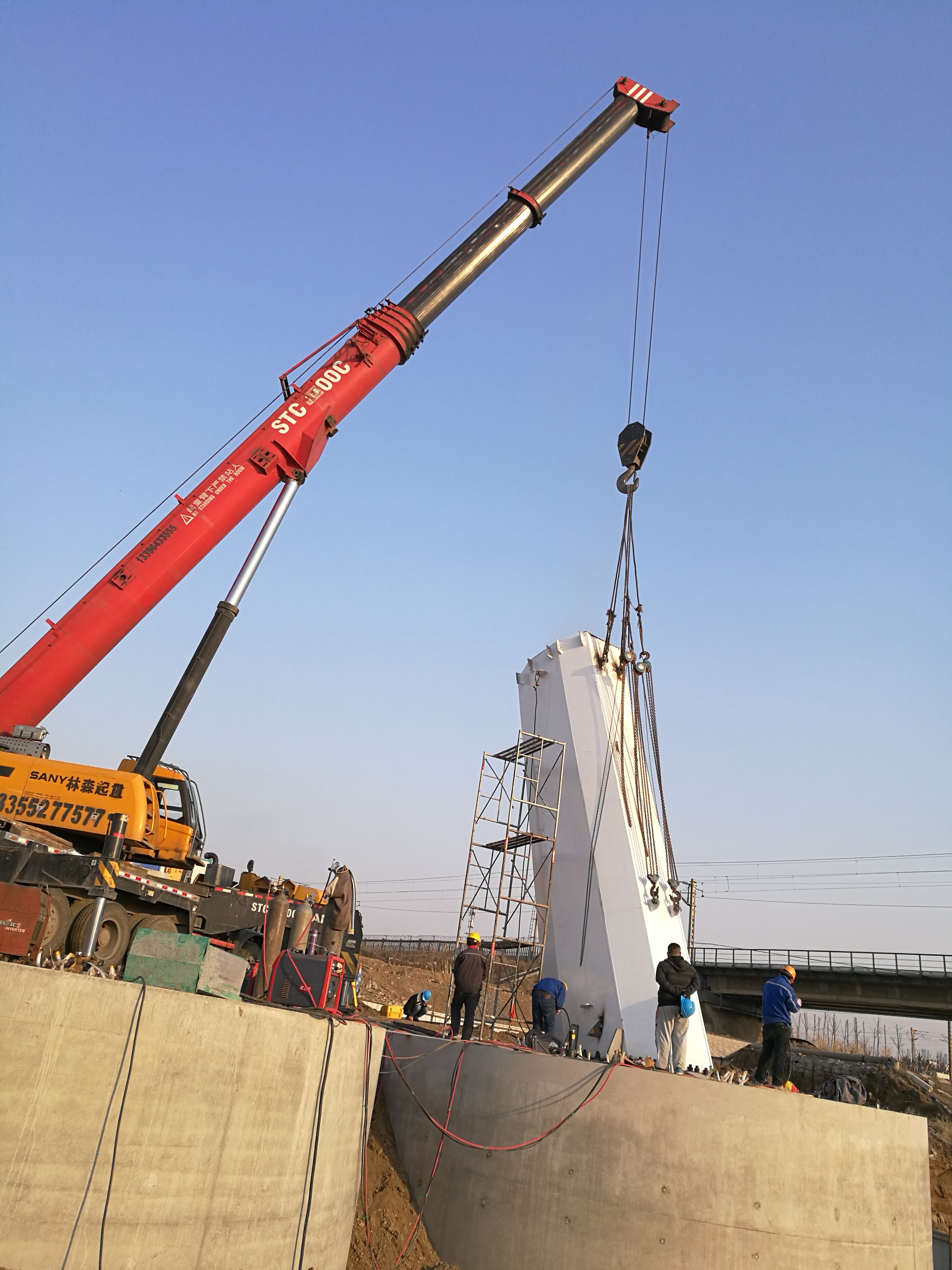 2017年3月14日,鋼主塔安裝現(xiàn)場。