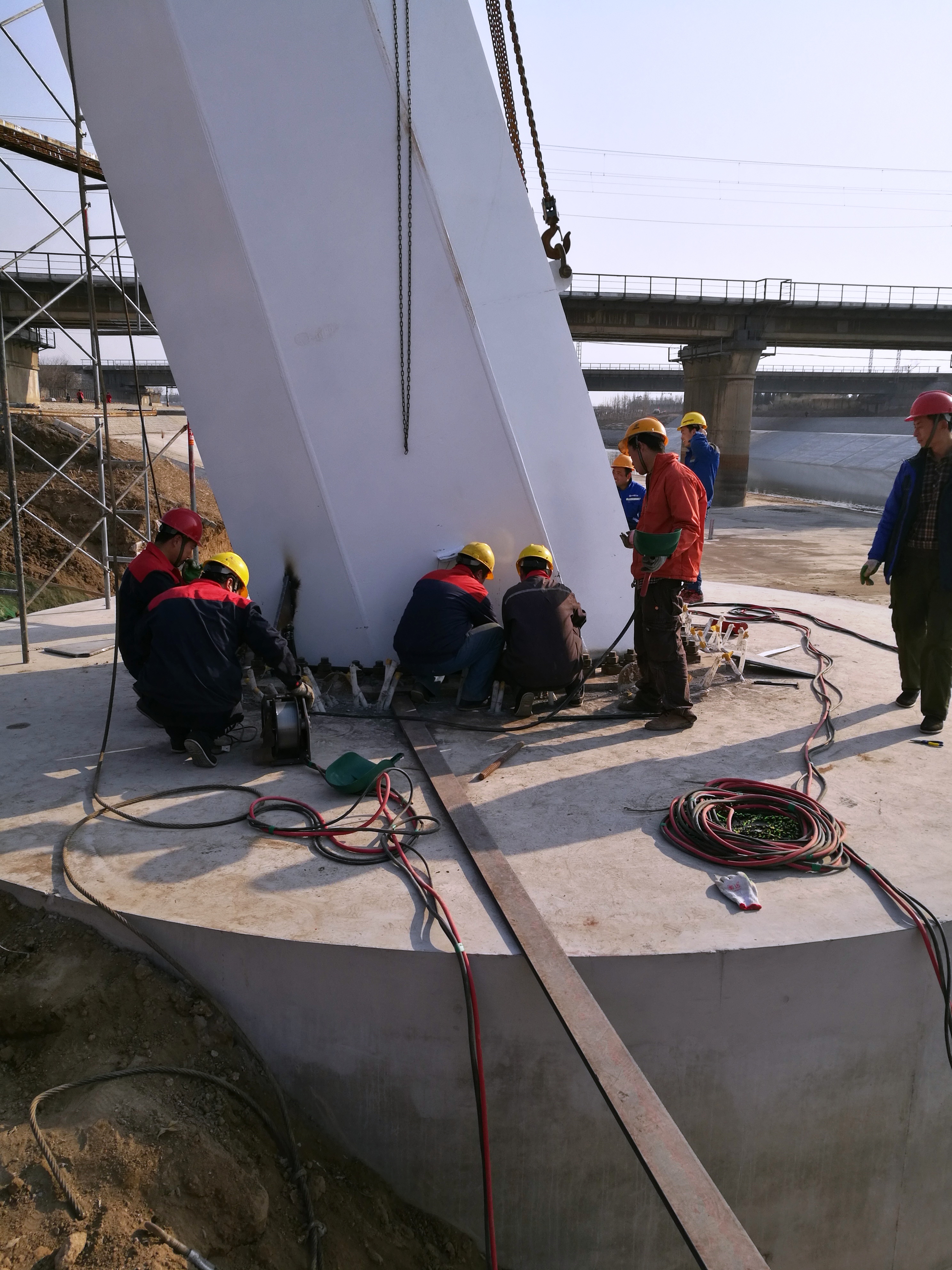2016年12月20日,主塔預(yù)埋件安裝就位檢測。