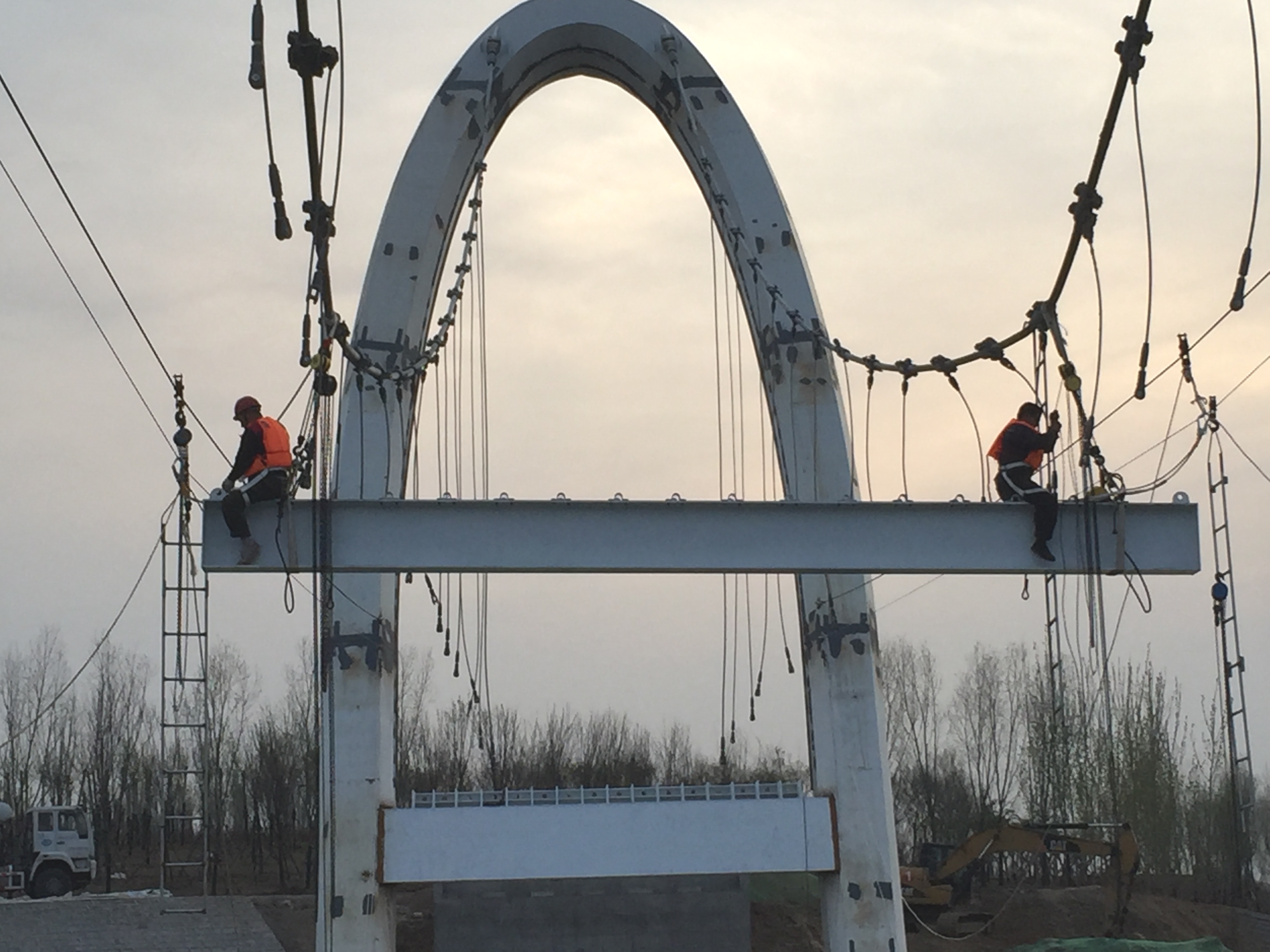 2017年4月3日,鋼主塔焊接質(zhì)量探傷。