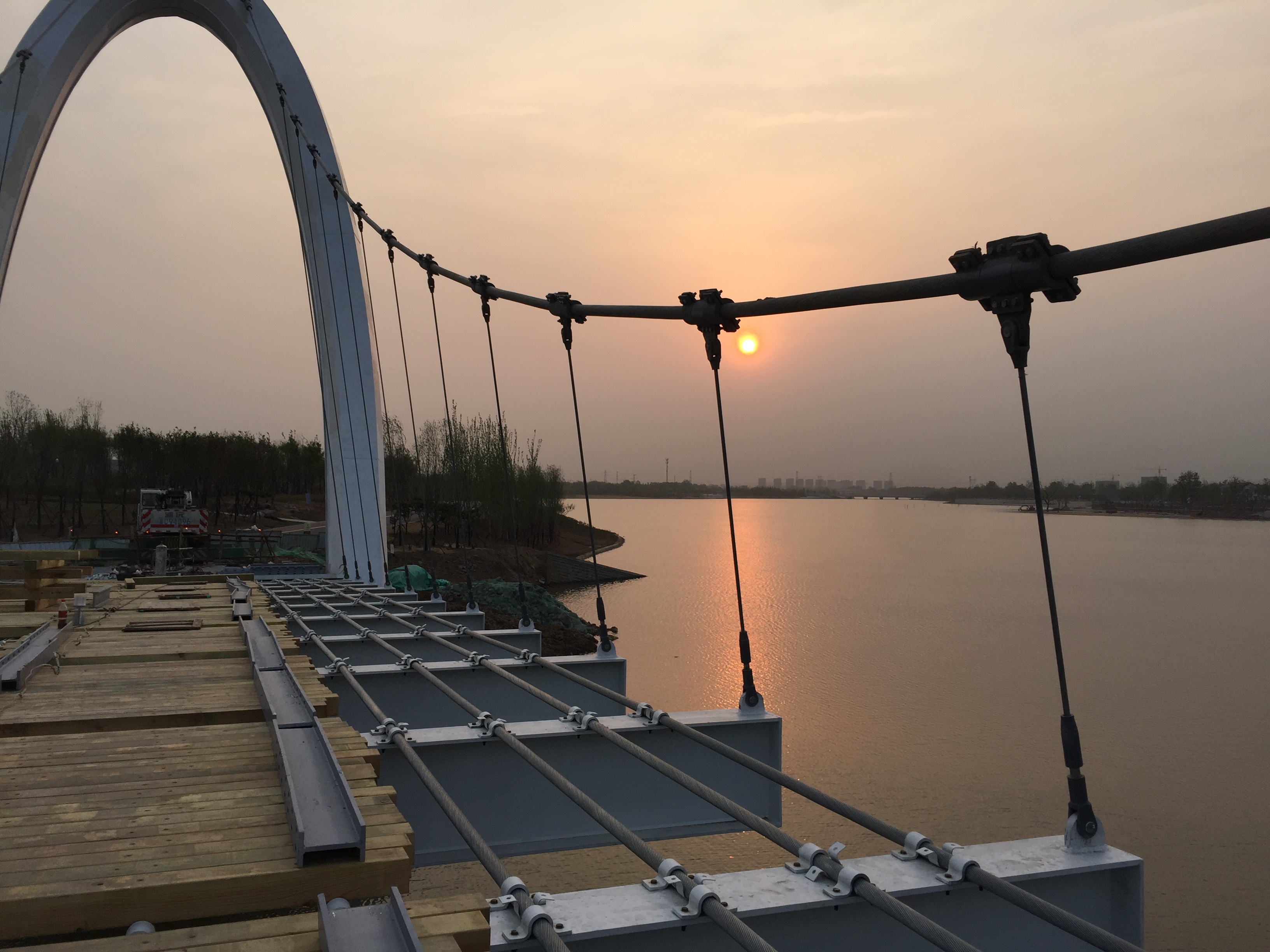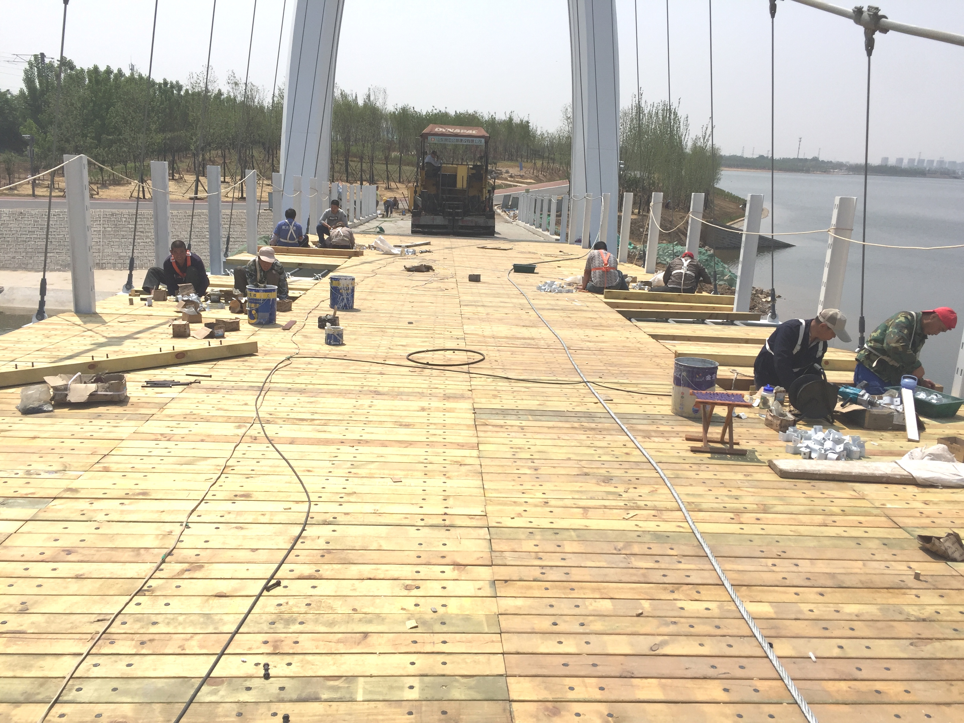 2017年5月9日,懸索橋防腐木鋪裝接近尾聲。