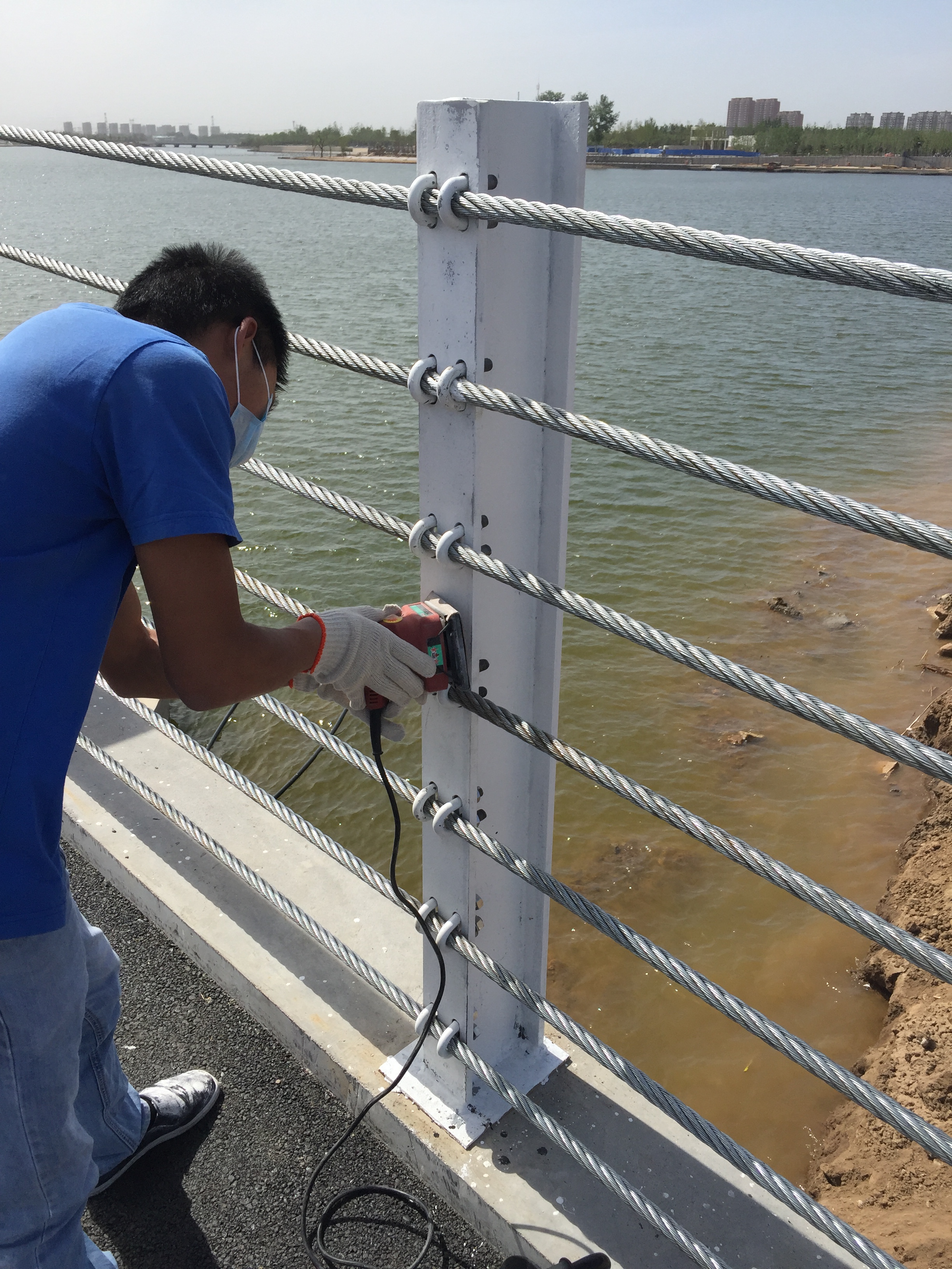 2017年5月12日,護(hù)欄鋼索開始安裝。