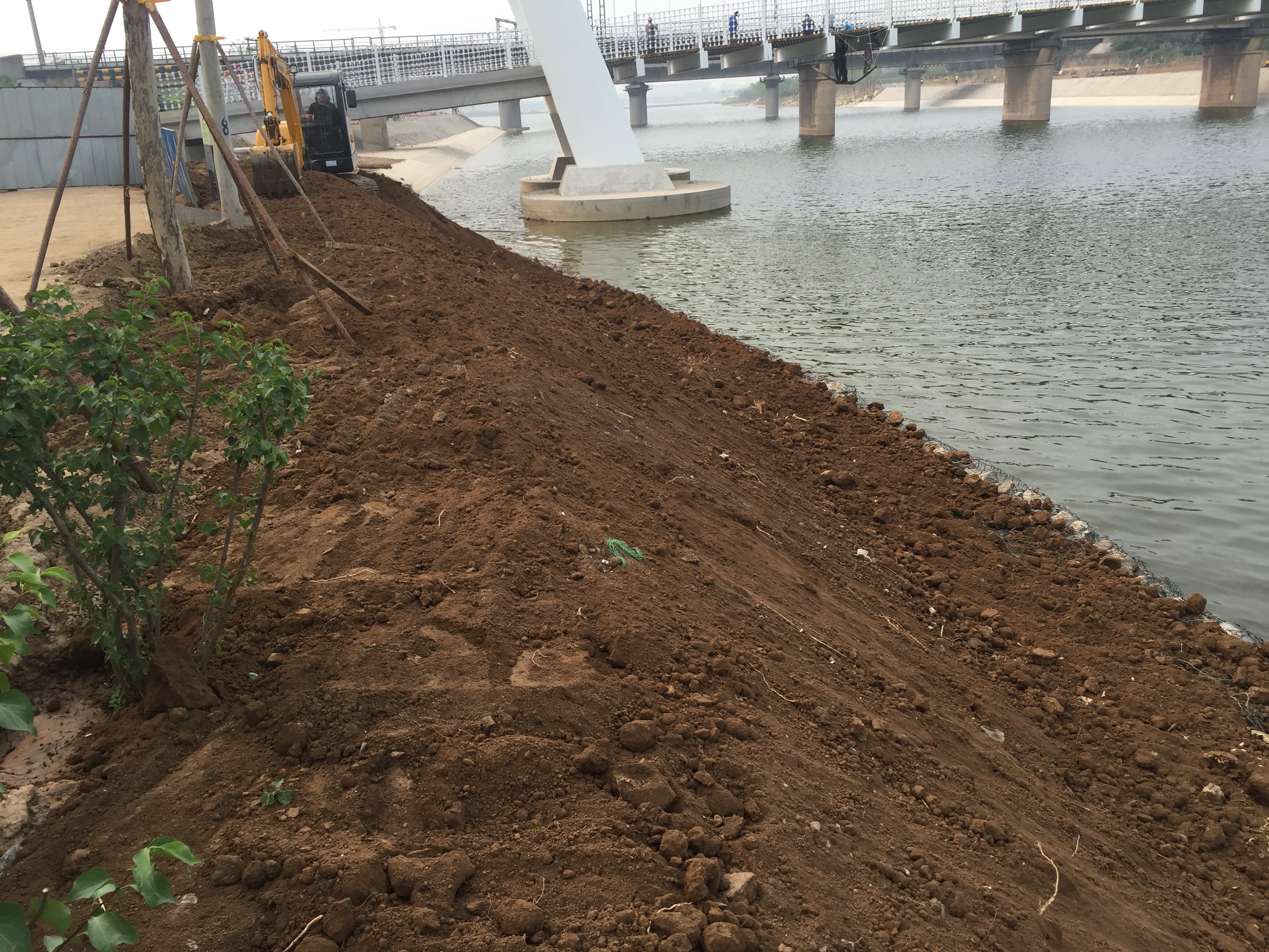 2017年4月29日,河岸進(jìn)行木樁防護(hù)。