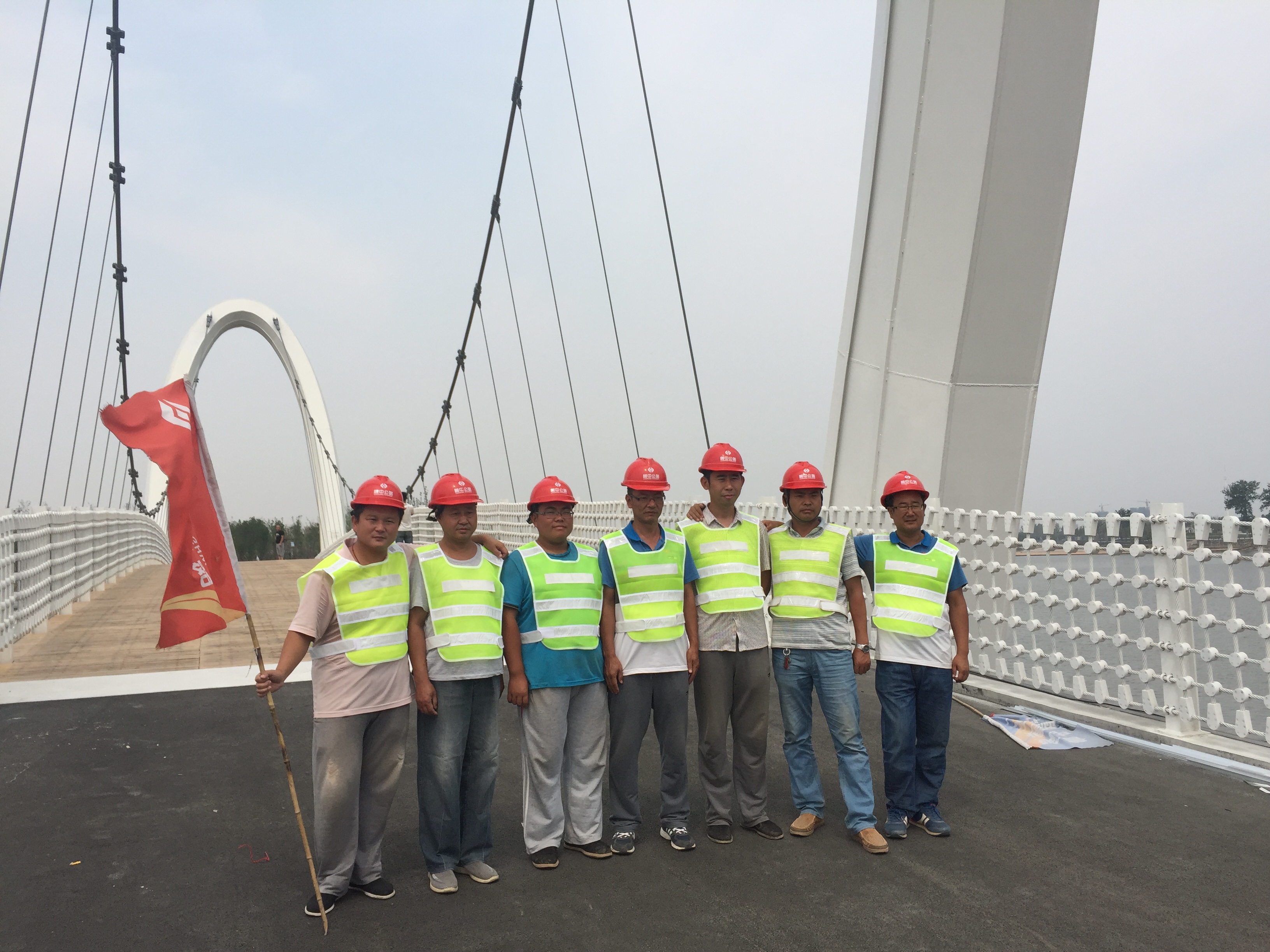 昨天的烈日下,汗水浸濕的衣背清晰可見,一雙雙有力的臂膀在揮舞、一顆顆執(zhí)著的心在跳動,火熱的場面涌現(xiàn)著無窮的力量。今天桀驁的懸索橋已成為孝婦河濕地公園獨(dú)特的景觀,絡(luò)繹不絕的游人,爭相合影留念,而我們卻輕揮衣袖,奔赴新的征程。