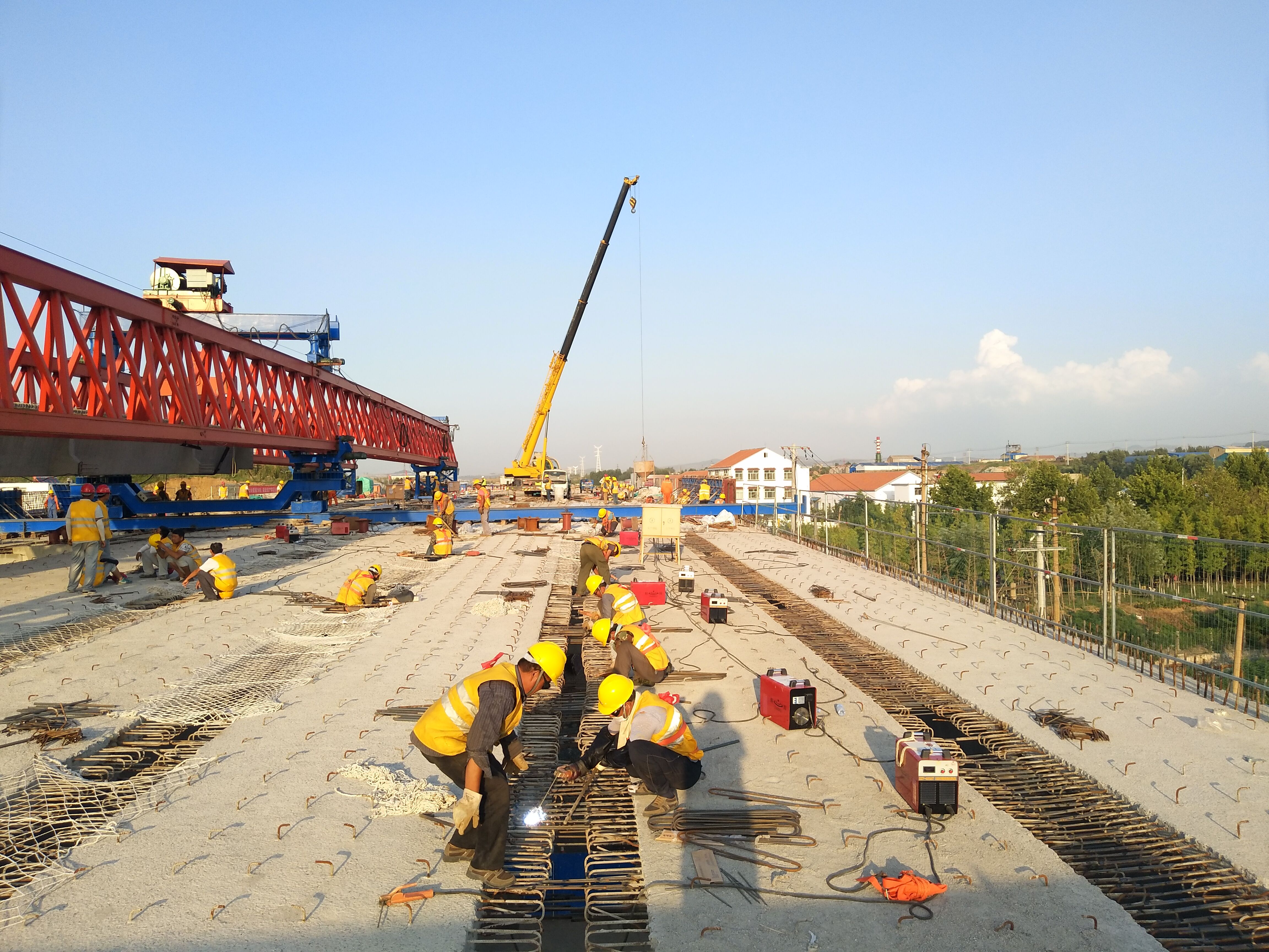 第18跨天窗點(diǎn)內(nèi)橋面緊張施工中