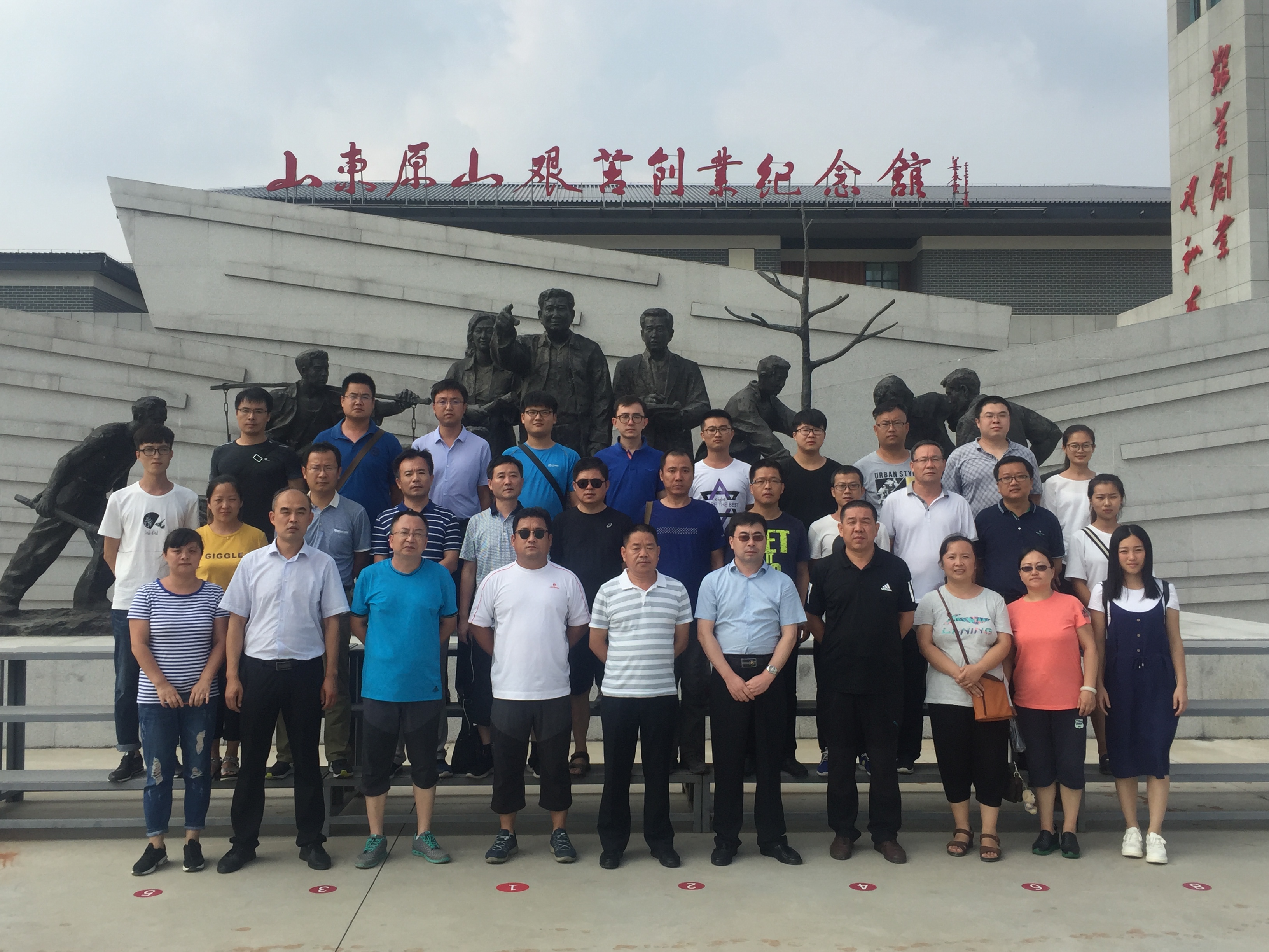 參加本次學(xué)習(xí)活動的全體員工在原山艱苦創(chuàng)業(yè)紀(jì)念館前合影