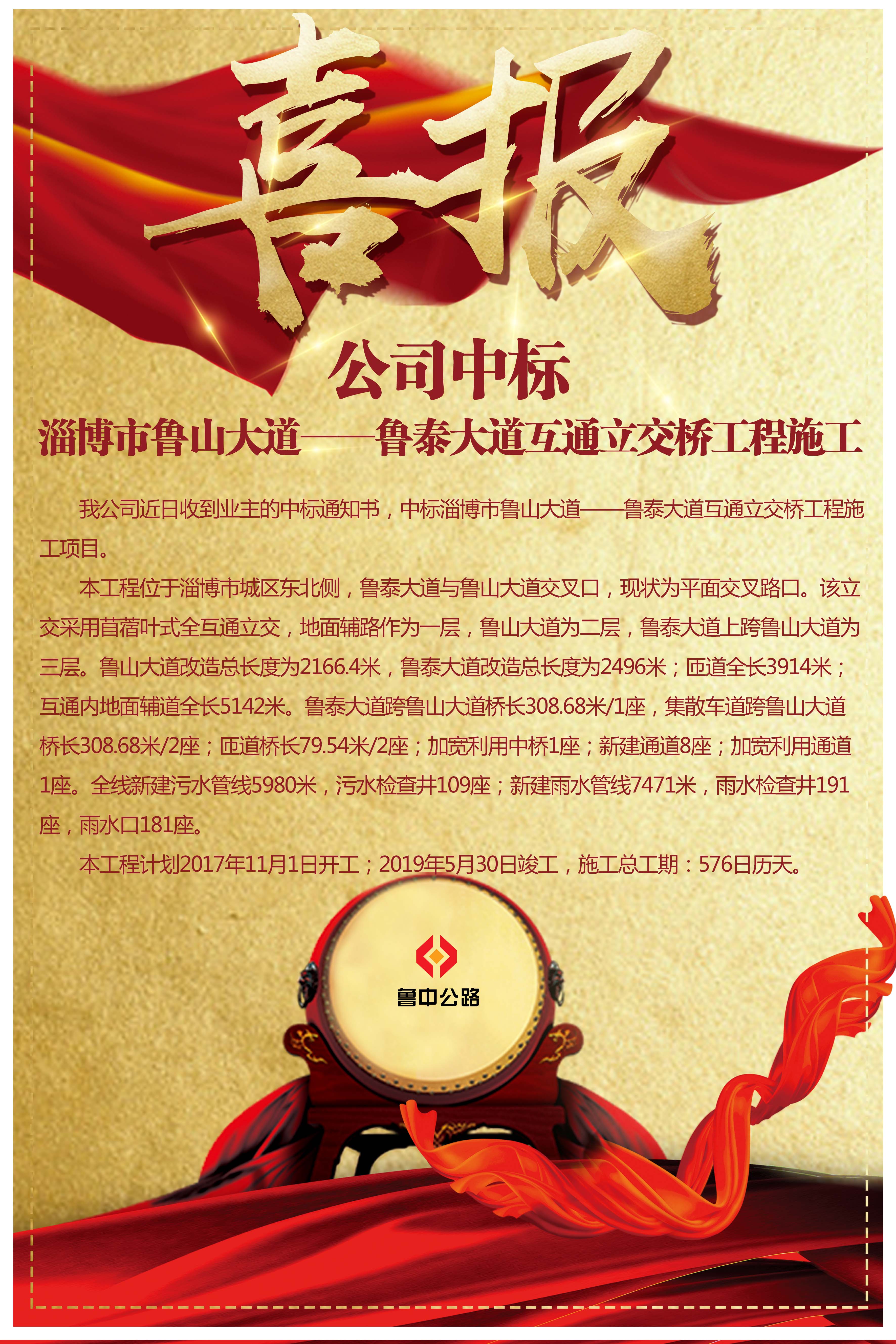 公司中標(biāo)淄博市魯山大道―魯泰大道互通立交橋工程施工