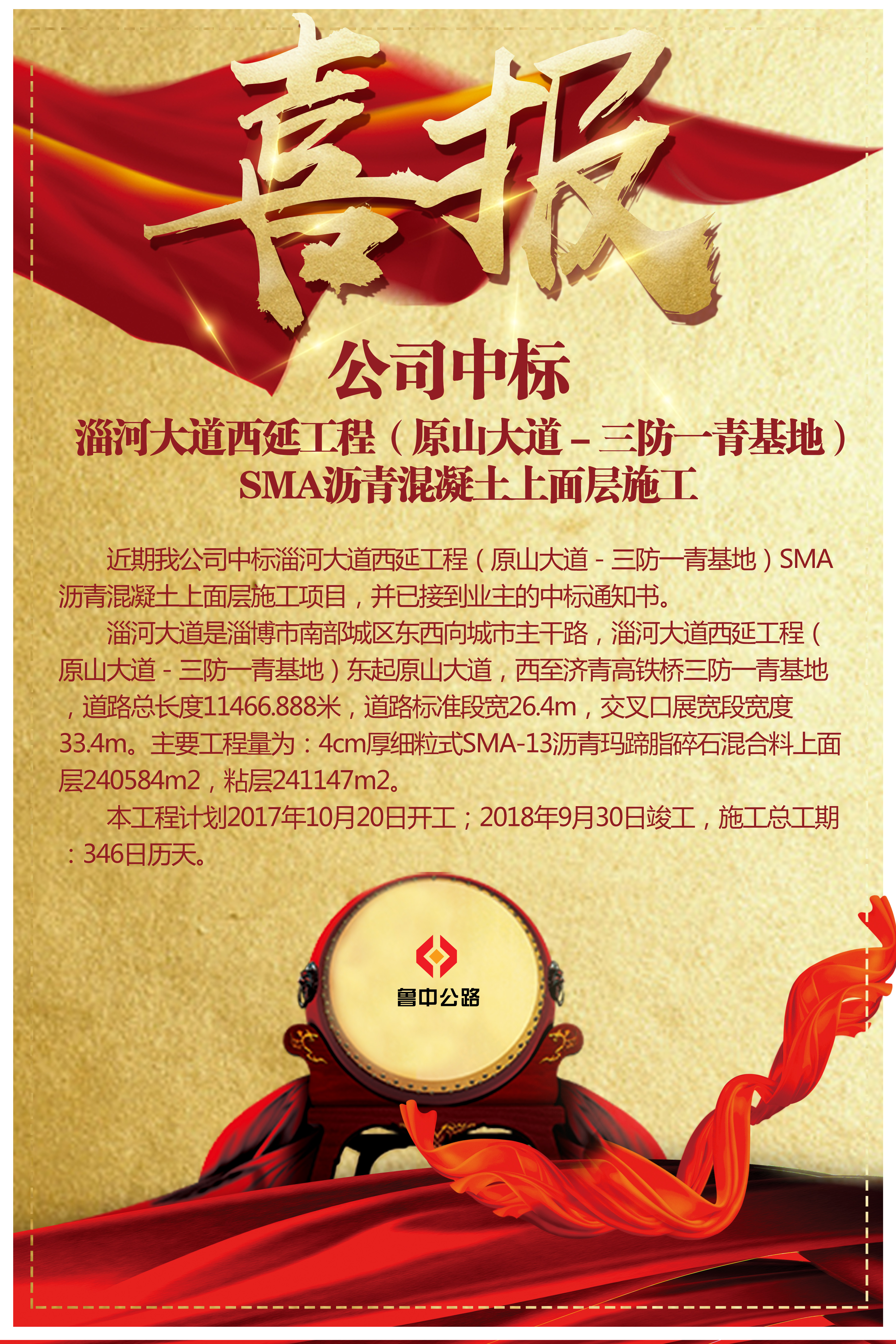 公司中標(biāo)淄河大道西延工程(原山大道-三防一青基地)SMA瀝青混凝土上面層施工