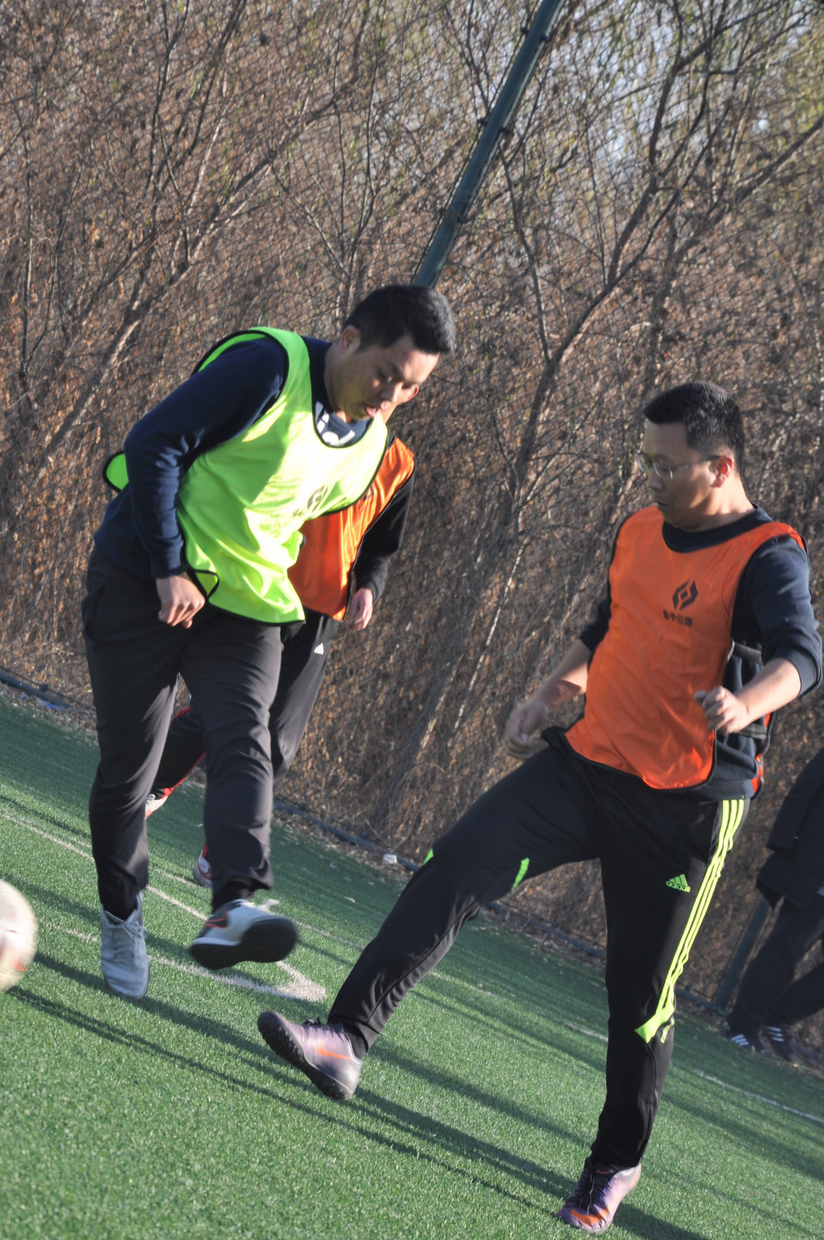 賽場上,隊員們激烈拼搶,盡情發(fā)揮球技,搶斷、過人、射門、撲救……精彩場面一個接一個,大家你追我趕,奮力馳騁。冬日的暖陽灑滿整個綠茵場,賽場上的人們熱情激昂,場下的觀眾也是心情激蕩。賽場周圍被染了金黃的楊柳樹,也仿佛重新煥發(fā)了生機,隨著風的律動,左右搖擺,歡呼雀躍。