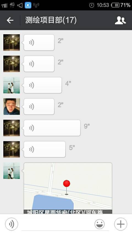 在工作當(dāng)中,我們的同事經(jīng)常根據(jù)具體情況想辦法出主意,利用平時(shí)溝通娛樂的工具解決工作中的實(shí)際困難,像大家都非常熟悉的微信,我們微信上面共享位置,我們利用導(dǎo)航地圖探討線路的走向,每當(dāng)聽到幾個(gè)人激烈的討論線路的走向,坐標(biāo)的位置等問題,我都能體會(huì)到大家對(duì)工作認(rèn)真負(fù)責(zé)的態(tài)度。我堅(jiān)信只要我們心往一處想,勁往一處使,不怕困難、不斷總結(jié),不斷付出我們的智慧和汗水,我們就一定能夠順利完成所有的測(cè)繪項(xiàng)目,我們測(cè)繪項(xiàng)目部的未來也一定會(huì)是光明和燦爛的!