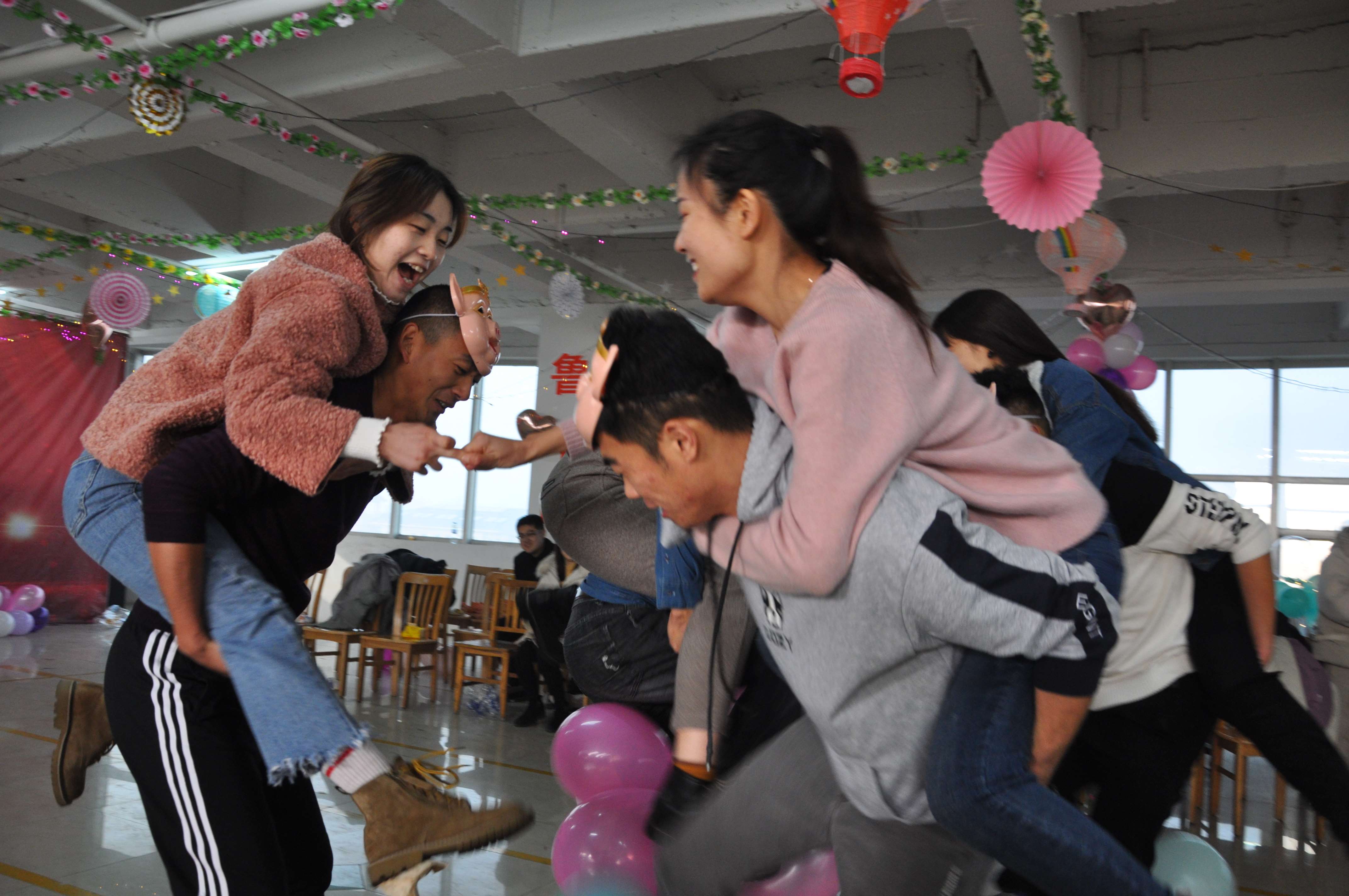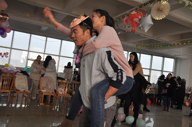 通過(guò)“認(rèn)識(shí)你”,展現(xiàn)出青年人團(tuán)結(jié)協(xié)作、擔(dān)當(dāng)果敢,和快速掌握技巧的大智慧。接下來(lái)則是為契合豬年諸事順利、心想事成,極力展現(xiàn)男孩子們個(gè)人魅力而設(shè)計(jì)的“八戒闖關(guān)”游戲。男生們紛紛帶上八戒面具,背著女孩子斬關(guān)奪隘,緊張火熱的游戲,引來(lái)大家喝彩、尖叫聲不斷。一個(gè)堅(jiān)毅而踏實(shí)的臂膀,不僅僅能壘砌通天下的路,更能為心中的她擎一片天,守護(hù)一生的幸福。