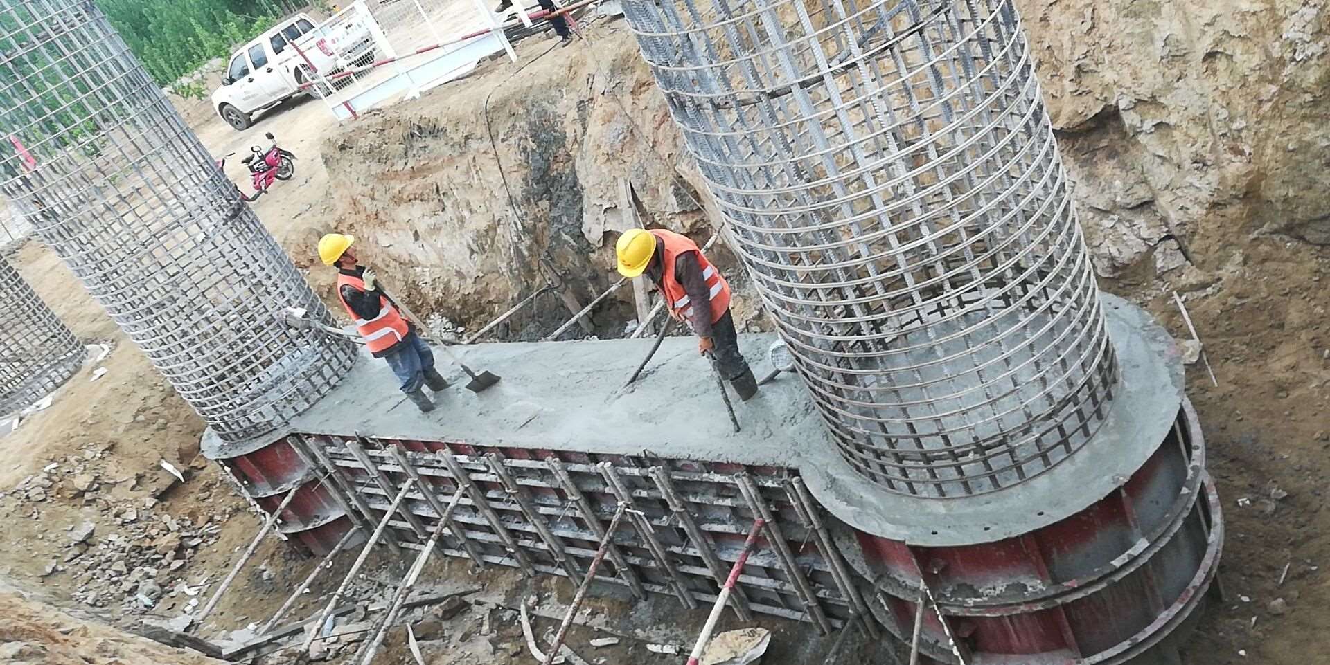 從項目工程現(xiàn)場到分部駐地有十分鐘左右的車程,回去用餐、休息,再返回工地,最少也要半個小時。為了節(jié)省時間,也為了及時完成今天的臺身澆筑任務(wù),一分部橋涵工區(qū)經(jīng)理王鵬輝、渠繼武決定不回項目部,和施工隊隨便對付了幾口后,便又投入了緊張的工作中。