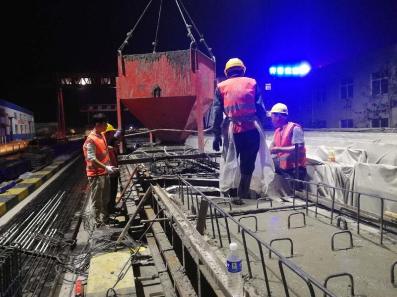 由于今晚還有樁基灌注任務(wù),范廣金、趙祥坤、劉亞坤等幾名現(xiàn)場管人員匆匆拔了幾口飯便又返回了現(xiàn)場,隨著一車車混凝土運到施工現(xiàn)場,伴著一根根樁基、系梁、一片片涵身順利澆灌完畢,時間也已來到了晚上22:00。
