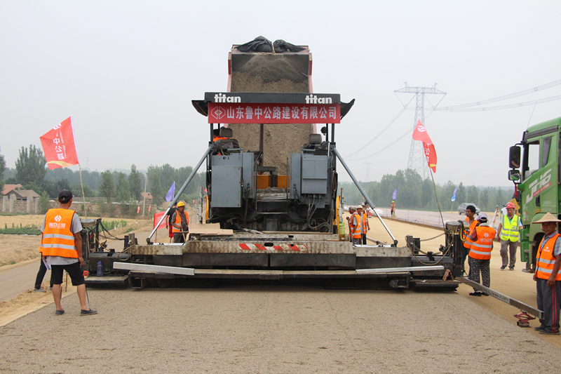 2019年6月20日上午8:38分,伴隨著震耳的鞭炮聲,隨著第一車水穩(wěn)級配碎石混合料進(jìn)入攤鋪機(jī)攪籠,由山東魯中公路建設(shè)有限公司承建的董梁公路新寧段二標(biāo)水穩(wěn)底基層試驗段開始攤鋪。