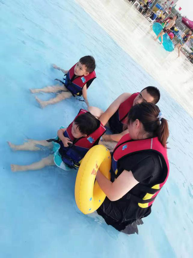 下午的活動安排是前往桓臺紅蓮湖水上樂園玩耍,孩子們到了水上樂園那可真的是撒了歡了,看到哪個項(xiàng)目都想要玩耍,水上小滑梯一趟接著一趟的玩兒,大一點(diǎn)的孩子們都等著“大海浪”來刺激一把,還有的孩子們在爸爸面前展示自己剛剛學(xué)會的游泳,孩子們和大人們臉上都掛著幸福的笑容。晚上聚餐的時候,有位媽媽說以前總以為孩子爸爸在工地上吃苦受累,心中滿是牽掛,今天親臨一線,看到標(biāo)準(zhǔn)化的工地建設(shè),看到這么融洽和協(xié)的團(tuán)隊氛圍,心中踏實(shí)了,會毫無顧慮的支持孩子爸爸的工作了。
