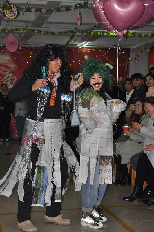 本屆聯(lián)誼會(huì)公司早早著手,早早行動(dòng),游戲項(xiàng)目都是千揀萬(wàn)選選出來的,雖已料到現(xiàn)場(chǎng)氣氛肯定激情飛揚(yáng),可真到實(shí)踐之時(shí),還是讓大家樂的東倒西歪。“支援前線”、“角色互換”等環(huán)節(jié)充分展現(xiàn)了當(dāng)代年輕人高效的執(zhí)行力及無(wú)限的創(chuàng)造力。支援前線活動(dòng)將會(huì)場(chǎng)氣氛推向高潮,當(dāng)主持人一聲令下要小組女生一只鞋子、一只襪子時(shí),女生們立即行動(dòng),毫不退縮;當(dāng)主持人要小組男生一件襯衣時(shí),穿襯衣的小伙伴還在發(fā)懵,但襯衣已瞬間被剝走了。角色互換無(wú)疑成為整場(chǎng)活動(dòng)的小太陽(yáng),人人腦洞大開,報(bào)紙、汽球、假發(fā)等小物件派上大用場(chǎng),十分鐘的化妝時(shí)間后,展現(xiàn)出來的風(fēng)采絕不亞于維密走秀,無(wú)論是氣場(chǎng)還是喝彩聲,讓整個(gè)現(xiàn)場(chǎng)都狂熱起來。
