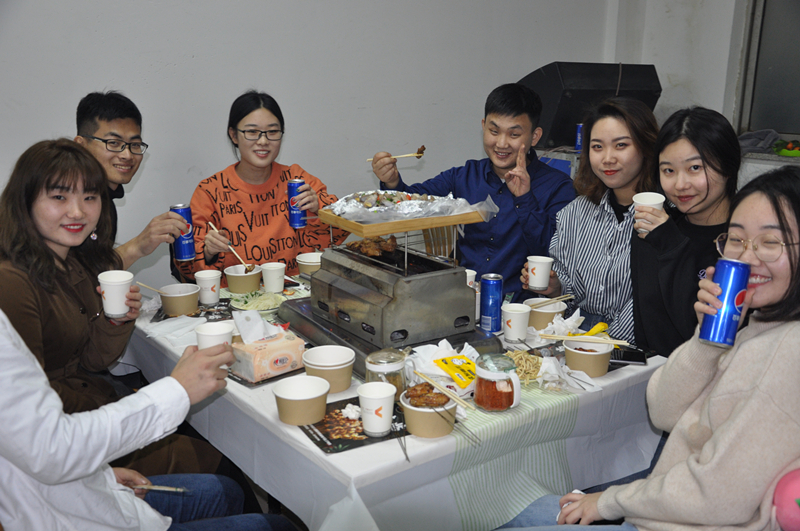 一下午的活動(dòng)充實(shí)又趣味十足。下午6:00,負(fù)責(zé)自助燒烤的同事們?cè)缫训群疃鄷r(shí),他們?yōu)閰⒓勇?lián)誼會(huì)的青年人們送上了各式精美烤串,玩累了鬧累了,推杯論盞,開啟了彼此幸福的晚餐時(shí)光。擼的是串,論的是緣,20200104這美好的日子里,突如其來的愛情在這些年輕人心中蔓延生長(zhǎng)。