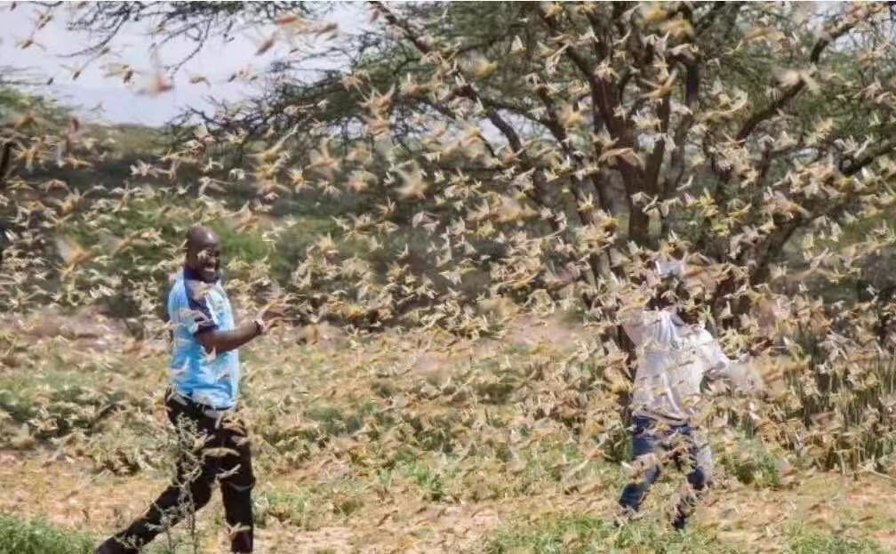 而在地球的另一端,東非,正遭遇著25年來最嚴(yán)重的蝗災(zāi),漫天肆虐的蝗蟲鋪天蓋地的席卷著莊稼和植被,數(shù)以萬計的人們斷了糧食。