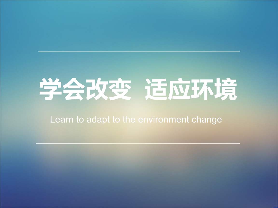 首先適應(yīng)“改變”是一種接受的過程:變化萬千的環(huán)境中,不可能一成不變。不接受競爭日益激烈的現(xiàn)狀,個人是永遠得不到進步的。接受是一種姿態(tài),是一種個人敢于面對的精神體現(xiàn)。所以適應(yīng)改變就要先接受改變,接受才可以談及如何面對,這種接受只能是主動的樂觀的,被動的悲觀的接受現(xiàn)狀會寸步難行。