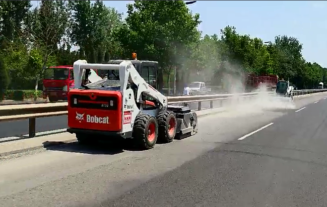 山貓改裝在去年的S294張博路中修工程施工期間我們購(gòu)買(mǎi)了目前功率最大的山貓——S770多功能滑移裝載機(jī)。為了實(shí)現(xiàn)真正的多功能,在原有鏟裝、銑刨、清掃的基礎(chǔ)上,我們進(jìn)行了無(wú)塵清掃試驗(yàn),并取得了成功。通過(guò)在某些部位加裝一些諸如濾芯等的小配件,便將清掃時(shí)的揚(yáng)塵通過(guò)風(fēng)機(jī)吸到濾芯中去了。
