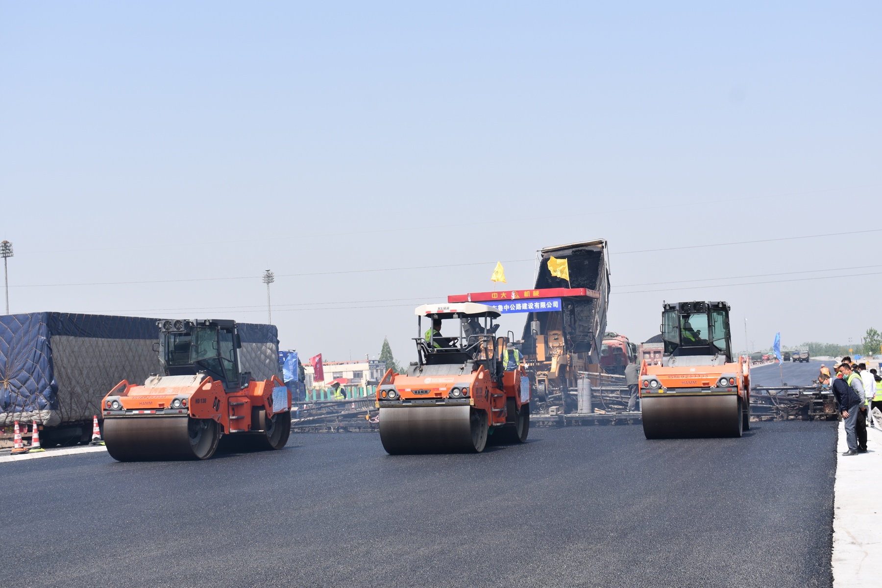 第二工程公司G2項目瀝青上面層試驗路攤鋪成功