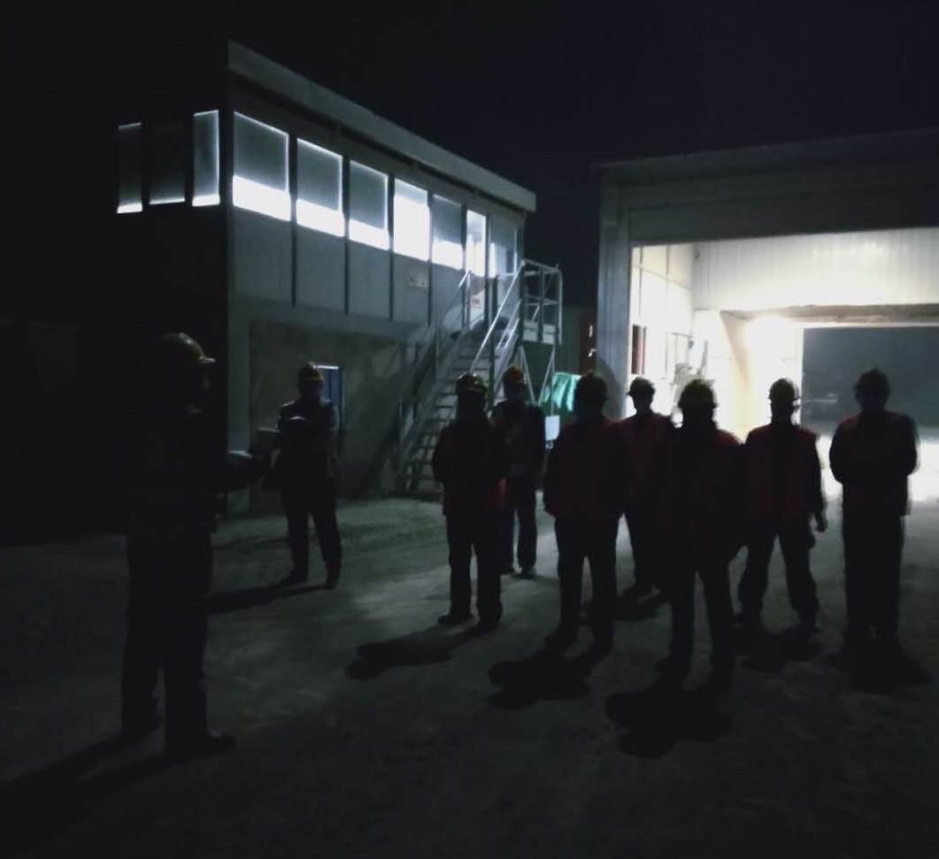 安全生產(chǎn)是永恒的主體,凌晨4:00瀝青拌合站操作工王志成開機(jī)前對(duì)工人做安全技術(shù)交底。