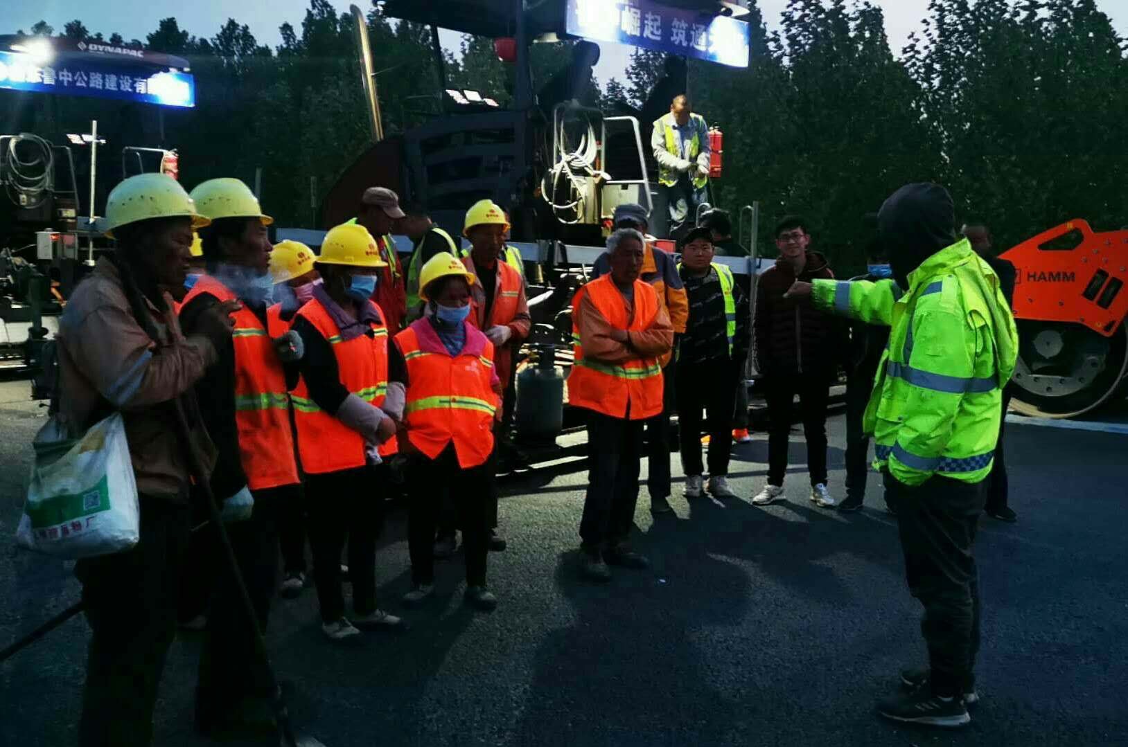 瀝青面層施工前,施工隊(duì)長(zhǎng)許超對(duì)工人做安全技術(shù)交底。