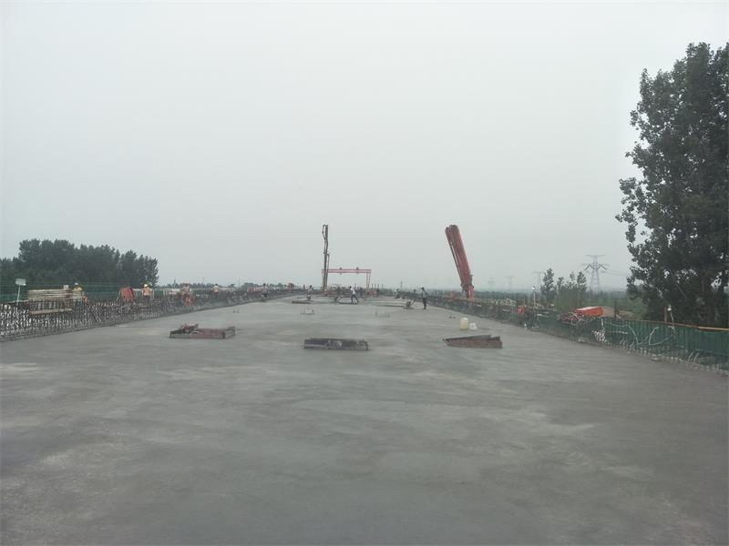 此次澆筑的跨G104國道的現(xiàn)澆箱梁施工路段交通流量大,車型多,屬重大危險路段。施工的左幅現(xiàn)澆箱梁設(shè)計C50混凝土方量1422.19方,實際混凝土用量1414方,澆筑時間從7月10日20:30至11日15:30,為了順利完成現(xiàn)澆連續(xù)箱梁的澆筑任務(wù),項目部高度重視,提前策劃,認真進行現(xiàn)澆梁砼澆筑安全技術(shù)交底,設(shè)定了坍落度、強度、澆筑程序、振搗、收面和養(yǎng)護等一系列質(zhì)量控制點,從人員、材料、設(shè)備、工藝、安全與環(huán)境等五個方面進行全面管理和控制。經(jīng)過19小時的連續(xù)奮戰(zhàn),跨G104國道K59+088.719興隆莊特大橋第14聯(lián)左幅現(xiàn)澆箱梁澆筑完畢。