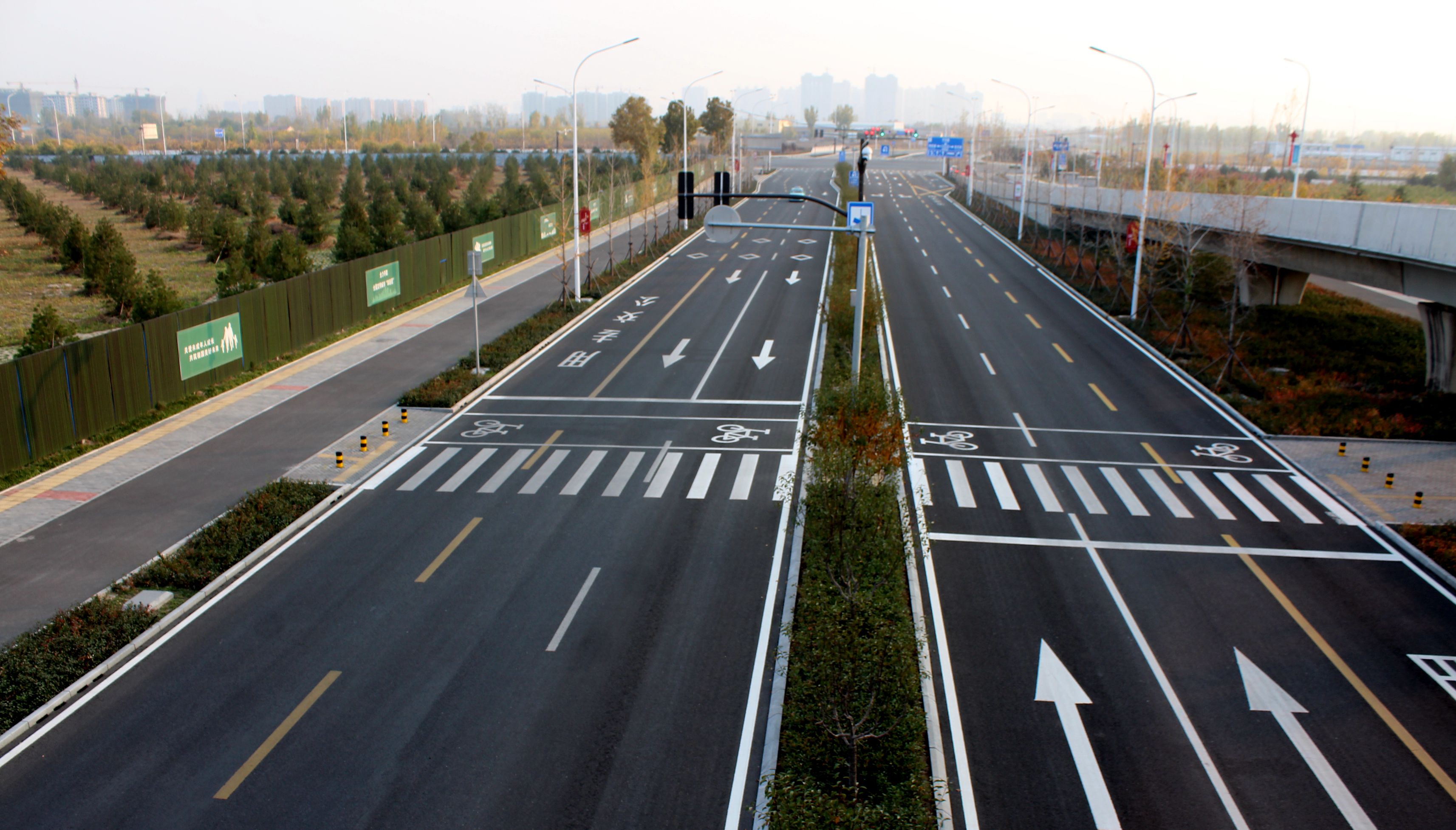 淄博高鐵新城高鐵北站站西路位于淄博高新區(qū)高鐵新城中部,是淄博高鐵北站西側(cè)一條南北向的城市次干路。設計范圍為化北路-黃河大道,道路全長3701.55m,道路紅線寬40m。2020年11月6日完成全部道路施工。