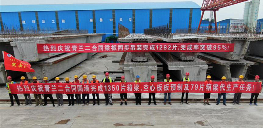 2020.07.04  綜合性預(yù)制場(chǎng)圓滿完成1350片預(yù)制梁板生產(chǎn)任務(wù),梁板同步吊裝完成1282片,完成率突破95%。