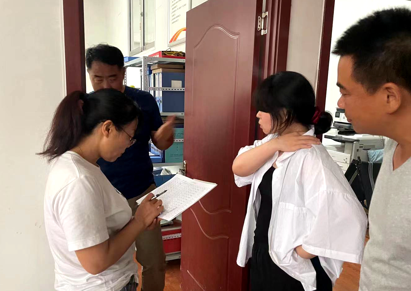 6月30日上午高溫酷熱難耐,盤點(diǎn)人員揮汗如雨,自東向西采取地毯式清點(diǎn)公司院內(nèi)周轉(zhuǎn)物資,然后逐室清點(diǎn)辦公室內(nèi)所有物品。下午頂狂風(fēng)冒急雨深入現(xiàn)場(chǎng)對(duì)項(xiàng)目露天堆放庫(kù)存物資,項(xiàng)目辦公設(shè)備,生產(chǎn)生活物資等逐一進(jìn)行清點(diǎn)核對(duì)。大到拌合站,小到錄音筆無不是有就必見實(shí)物,所有盤點(diǎn)物品一一清清楚楚記錄在案。