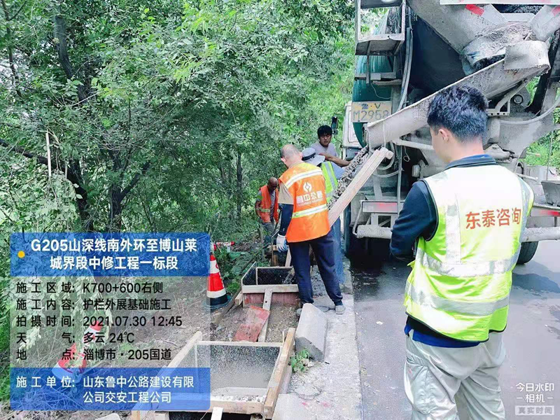 護(hù)欄立柱基礎(chǔ)施工受天氣因素影響,導(dǎo)致青石關(guān)混凝土基礎(chǔ)護(hù)欄較原計(jì)劃有所延誤,臺(tái)風(fēng)過后項(xiàng)目部馬上組織隊(duì)伍清理坑槽支模板,截至8月1日,三天時(shí)間完成基礎(chǔ)澆筑51處。