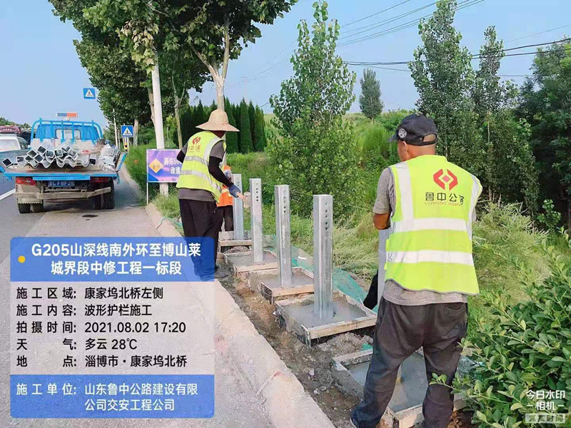 波形護(hù)欄安裝施工受天氣影響延誤,臺(tái)風(fēng)過后項(xiàng)目部迅速進(jìn)行人員分組,交工段按左右幅分組依次展開施工,截至8月1日,三天時(shí)間完成掛板100米。