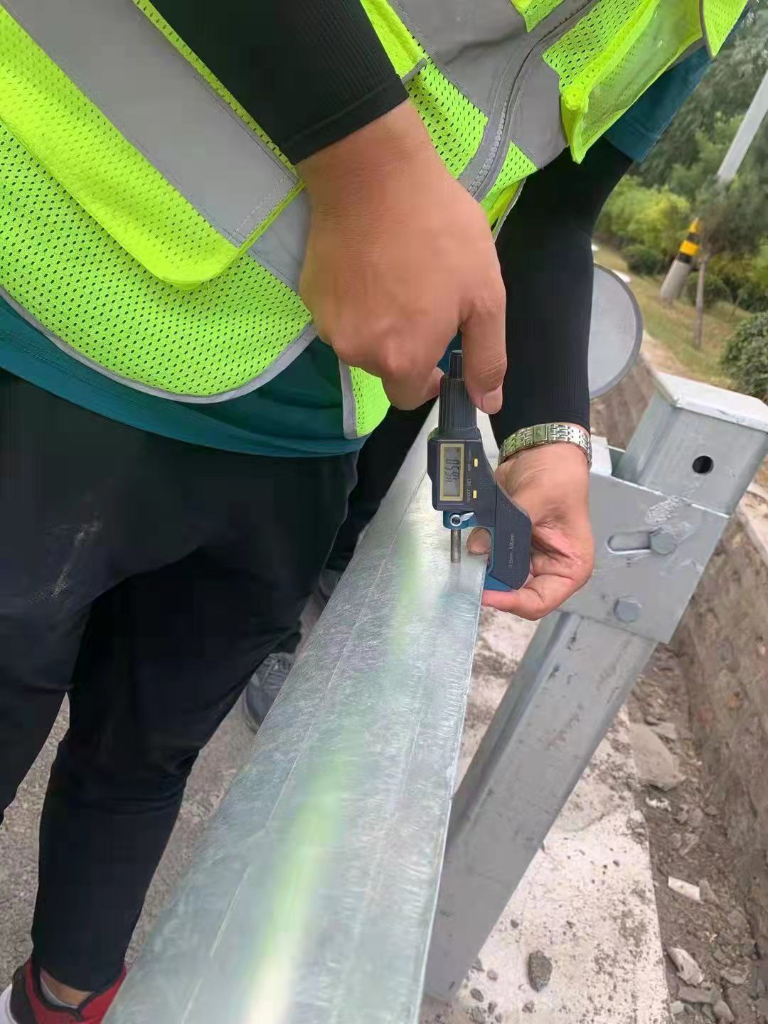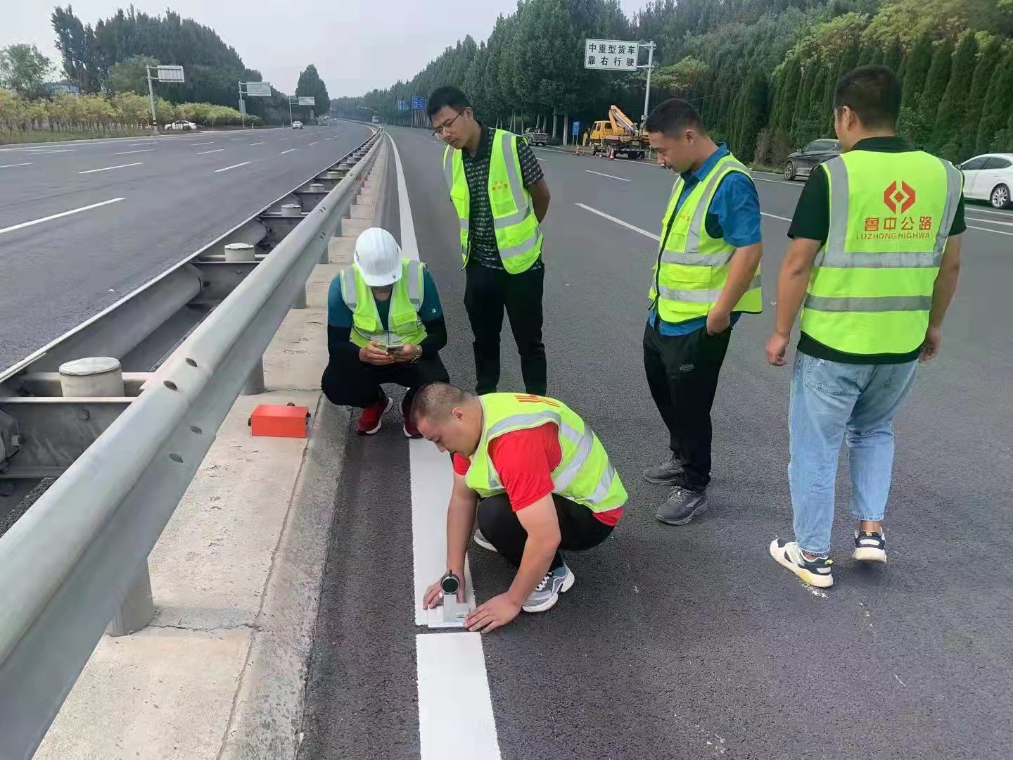 8:30,交工檢測驗收自G205山深線標(biāo)頭淄河大道位置開始,共分路面檢測組、橋梁檢測組、隧道檢測組、交安檢測組四個小組,其中,路面檢測組負責(zé)檢測路面厚度、壓實度、平整度、橫向力系數(shù)、滲水、橫坡等;橋梁檢測組負責(zé)檢測伸縮縫、升級改造護欄質(zhì)量;隧道檢測組負責(zé)檢測隧道裝修質(zhì)量、燈光亮度;交安檢測組負責(zé)檢測標(biāo)志牌厚度、反光系數(shù),波形護欄厚度、鍍鋅層厚度等。