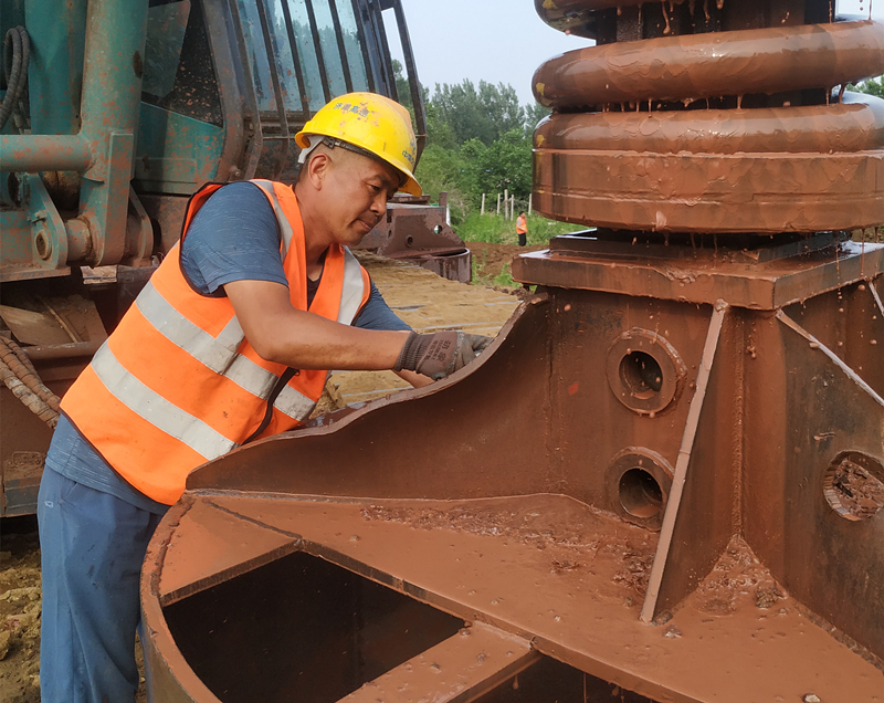 在晴空萬里中,在烈日炎炎下,在陰雨綿綿里,在皓月當(dāng)空時(shí),魯中公路橋涵施工現(xiàn)場(chǎng)始終矗立著一支“頂天立地”的隊(duì)伍——交安工程公司旋挖鉆施工隊(duì)。作為橋梁樁基施工的重型機(jī)械,旋挖鉆機(jī)組對(duì)橋梁質(zhì)量和整體施工進(jìn)度起著重要作用。舒展最高達(dá)28米,寬5.2米,重量18噸,最大鉆孔直徑2.5米,最大鉆孔深度96米,要駕馭這個(gè)龐然大物也非易事。從鉆孔開始,需要根據(jù)地質(zhì)情況及時(shí)調(diào)整更換鉆頭;鉆齒磨損需及時(shí)提鉆更換,遇到特殊地質(zhì)鉆齒更換更為頻繁。所有都是鐵家伙,全靠人工肩扛手抬和一臺(tái)裝載機(jī)來操作。灌樁一旦開始必須一氣呵成不容停頓,無論白天黑夜,干到幾點(diǎn)算幾點(diǎn)?,F(xiàn)場(chǎng)人員體力、精力消耗較大。