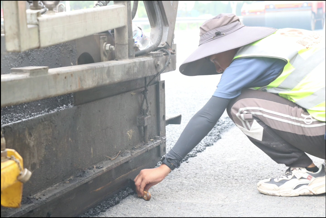 還記得我初次到G205時(shí),正值七月份,是一年中最炎熱的時(shí)候,又是項(xiàng)目正大干的時(shí)候,直到現(xiàn)在回想起來依然能感覺到那種酷熱難當(dāng)??吹秸谶M(jìn)行瀝青攤鋪,我邁步向?yàn)r青攤鋪車走去,感覺眼前的空間都在扭曲。再看身邊的每個(gè)施工人員,臉上都有豆大的汗珠不斷地掉落。施工人員告訴我,瀝青的出廠溫度達(dá)到180℃左右,到達(dá)路面時(shí)溫度也有120℃左右。頭頂是炎炎烈日,腳下是滾燙的瀝青,看著到處都是忙碌的身影,我對他們的敬佩又重了幾分。