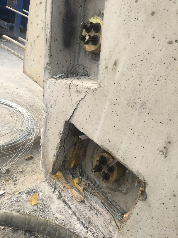 以往固定端頭臺(tái)座設(shè)計(jì),施工中箱梁砼端頭破損
