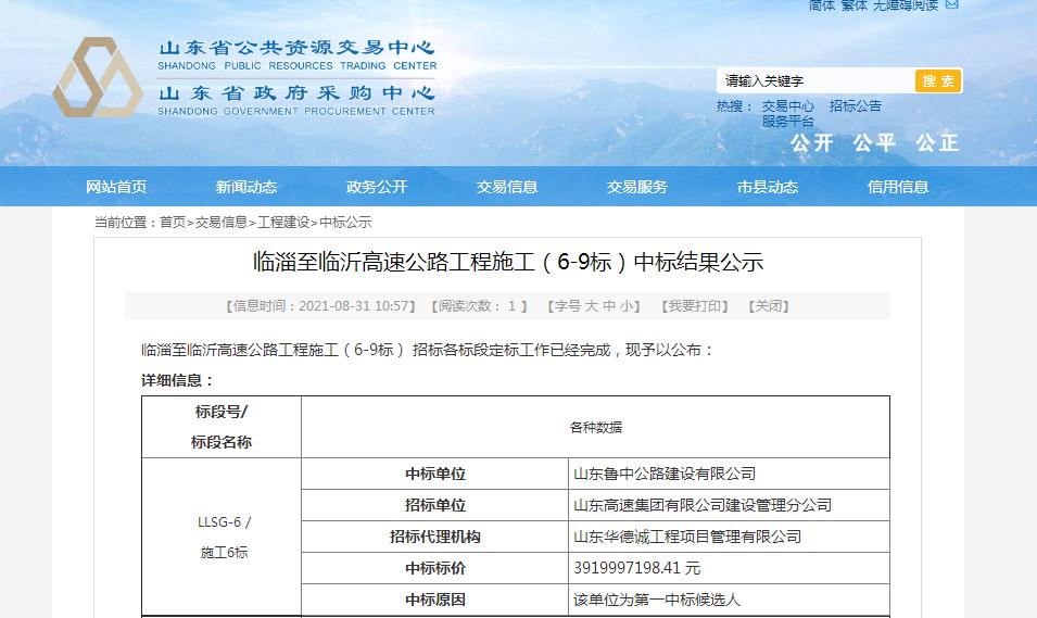 2021年8月31日,山東省公共資源交易中心發(fā)布了臨淄至臨沂高速公路工程施工(6-9標)中標結(jié)果公示,魯中公路中標施工6標段。消息傳來,公司上下一片沸騰,人人磨拳擦掌,爭相報名投入到臨臨建設(shè)中去。