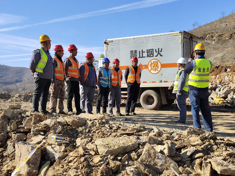 西里互通碎石加工廠在場(chǎng)地建設(shè)時(shí),山體硬質(zhì)巖石居多,為加快施工進(jìn)度,同時(shí)也為下步路基爆破施工積累經(jīng)驗(yàn),我部計(jì)劃采取爆破施工,經(jīng)過(guò)前期的工作準(zhǔn)備,三分部于2021年12月1日在西里互通碎石加工廠對(duì)場(chǎng)地山體順利完成了爆破施工。整個(gè)施工過(guò)程嚴(yán)格按照操作規(guī)范實(shí)施,并且沂源縣治安大隊(duì)對(duì)整個(gè)爆破過(guò)程進(jìn)行全程現(xiàn)場(chǎng)監(jiān)督,對(duì)安全措施做出了充分肯定。