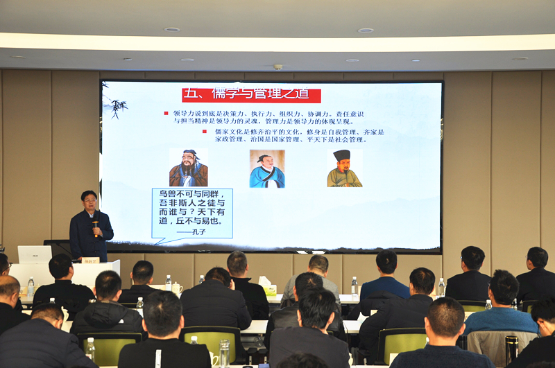 9日,課程從企業(yè)管理切入,講述了儒家智慧與修齊治平之道。老師首先對(duì)儒學(xué)概念進(jìn)行了簡要解析。并深入淺出,帶領(lǐng)學(xué)員們探尋儒學(xué)其本質(zhì),及生活中的儒學(xué)智慧。儒家思想崇尚道德修為,但其學(xué)說并不僅僅限于道德,如今其已更多地滲透為中國人的價(jià)值觀及其是非評(píng)判標(biāo)準(zhǔn)。中華民族在泱泱五千年文明發(fā)展史中所積淀起的獨(dú)特文化傳統(tǒng),鍛造出了中國人所特有的文化品性,儒家的入世品格決定了它必然也是管理之道。儒家文化就是要從自我、家庭、國家、社會(huì)各個(gè)角度進(jìn)行治理。講座結(jié)束后,老師與學(xué)員們進(jìn)行了深入的探討與交流,使儒家的核心觀點(diǎn)更具現(xiàn)實(shí)意義,令人受益匪淺。