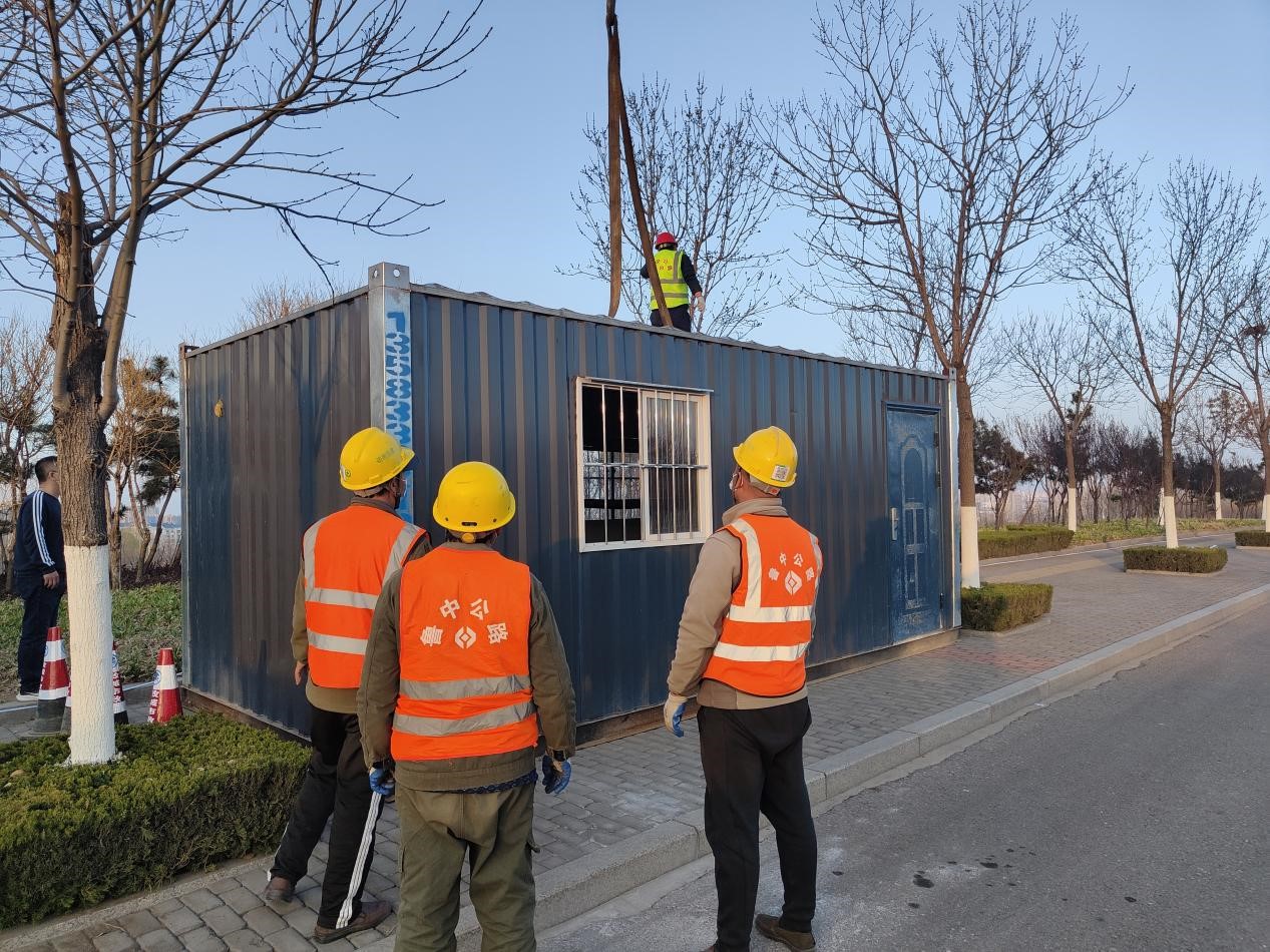 3月14日下午18時,魯中公路第五區(qū)域項目部將施工現(xiàn)場集裝箱運至G205將軍路路口,為防疫工作人員送去溫暖。
