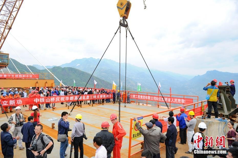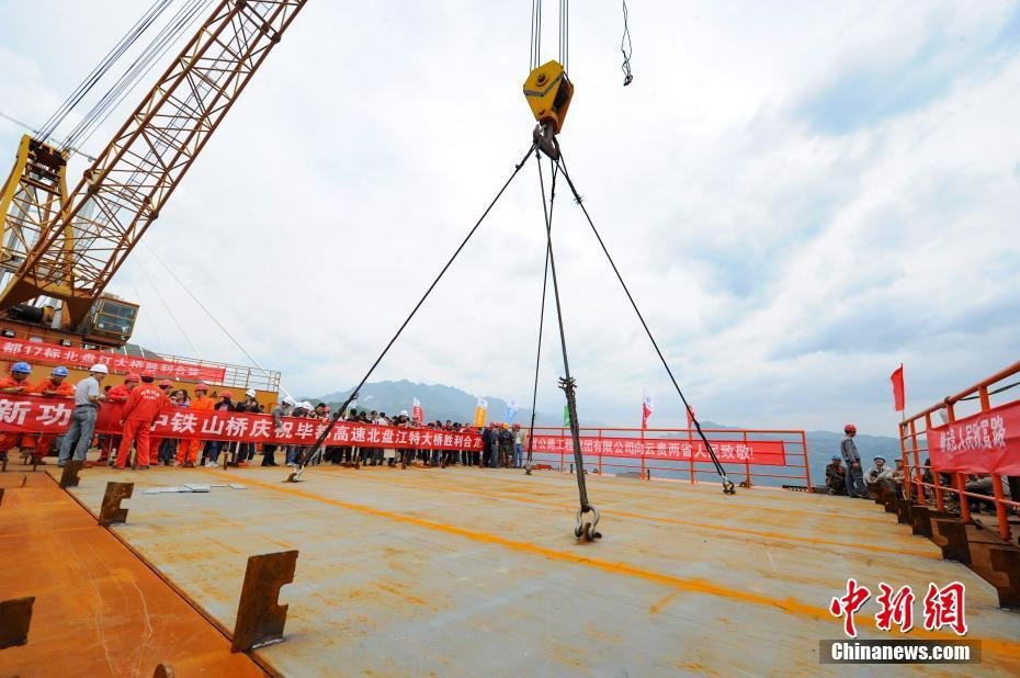 9月10日,由貴州、云南兩省合作共建的世界第一高橋——杭瑞高速貴州省畢節(jié)至都格(黔滇界)高速公路北盤江大橋?qū)崿F(xiàn)合龍。北盤江大橋是杭瑞高速畢都段的控制性工程,位于云南省和貴州省交界處,北盤江大橋橋面至江面高差達565米,超越之前世界第一高橋四渡河特大橋的560米,成為目前世界第一高橋,大橋主橋為鋼桁梁斜拉橋,主跨720米,畢都高速公路全線預計今年底可建成通車。